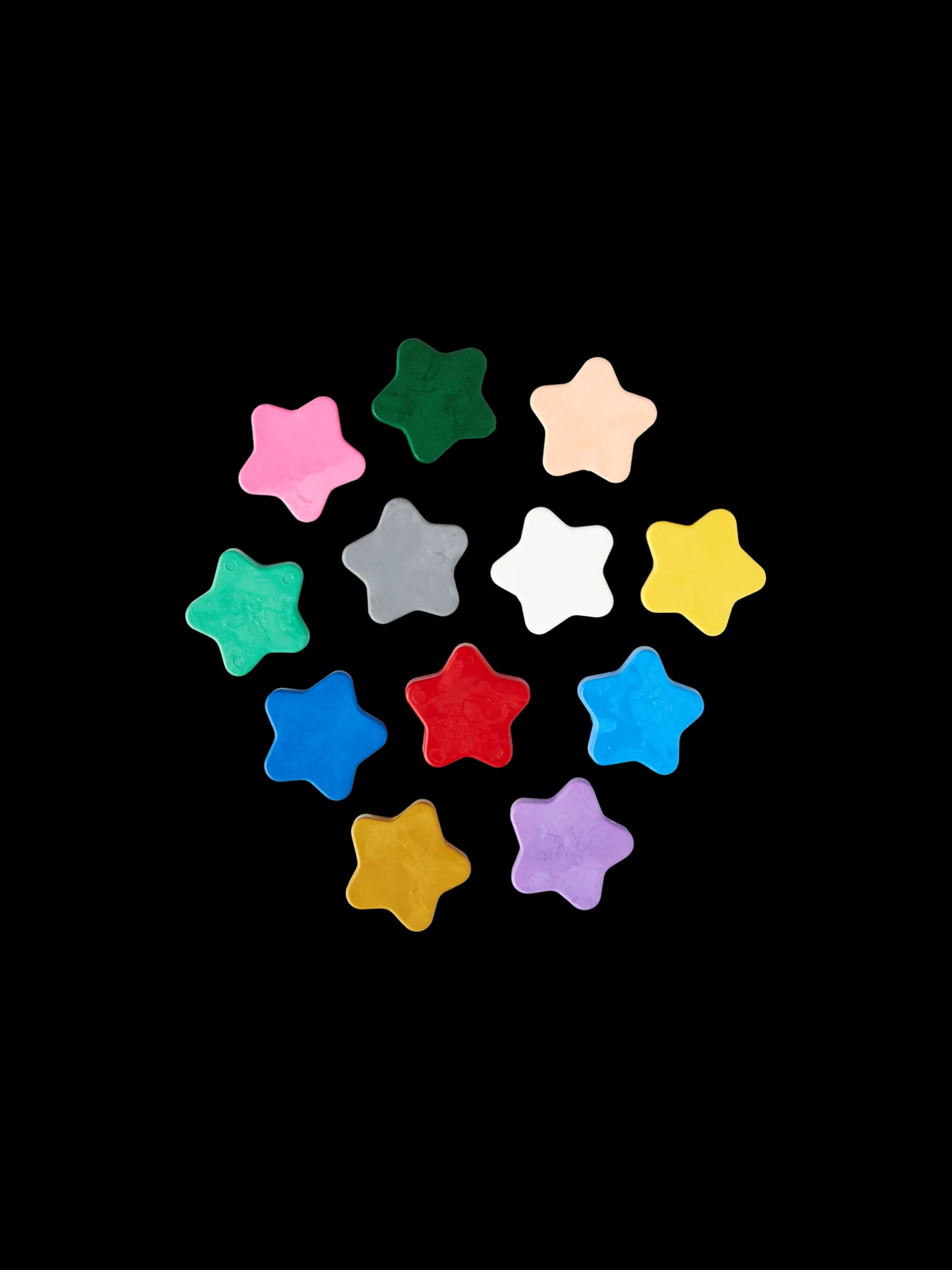 Søstrenes farvekridt er stjerneformede. Hver pakke har 12 forskellige farver.