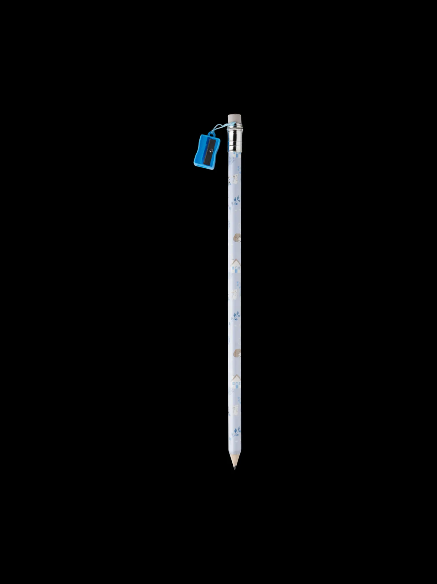 Søstrenes store blyant er lavet af 100% FSC®-certificeret poppeltræ. Den leveres med en blyantspidser og har en viskelæderspids. “Større blyanter er særligt velegnede til de yngre børn, som skal lære at skrive, da de har et bedre greb om disse,” forklarer Clara.
