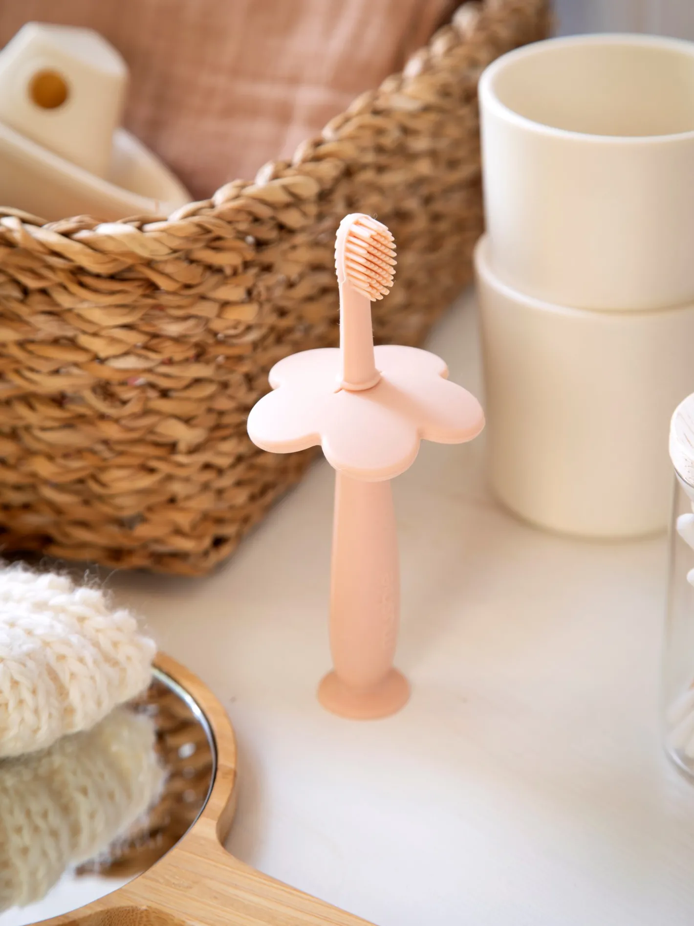 Tandbørsten fra Mushie er lavet af fødevaregodkendt silikone. Den er velegnet til alle aldre. Introducér de små til selvstændig børstning, og opbyg gode vaner med den børnevenlige tandbørste. De bløde børster renser og stimulerer blidt den lilles tandkød og tænder. Silikonesugekoppen er praktisk, og den aftagelige sikkerhedsskærm kan forhindre kvælning, hvilket gør denne tandbørste sikker og nem at bruge. Søstrene anbefaler at rengøre den med varmt sæbevand og lade den lufttørre. Bemærk venligst, at produktet altid skal bruges under opsyn af en voksen. Undersøg produktet før hver brug. Afskaf ved tegn på skade eller svaghed.