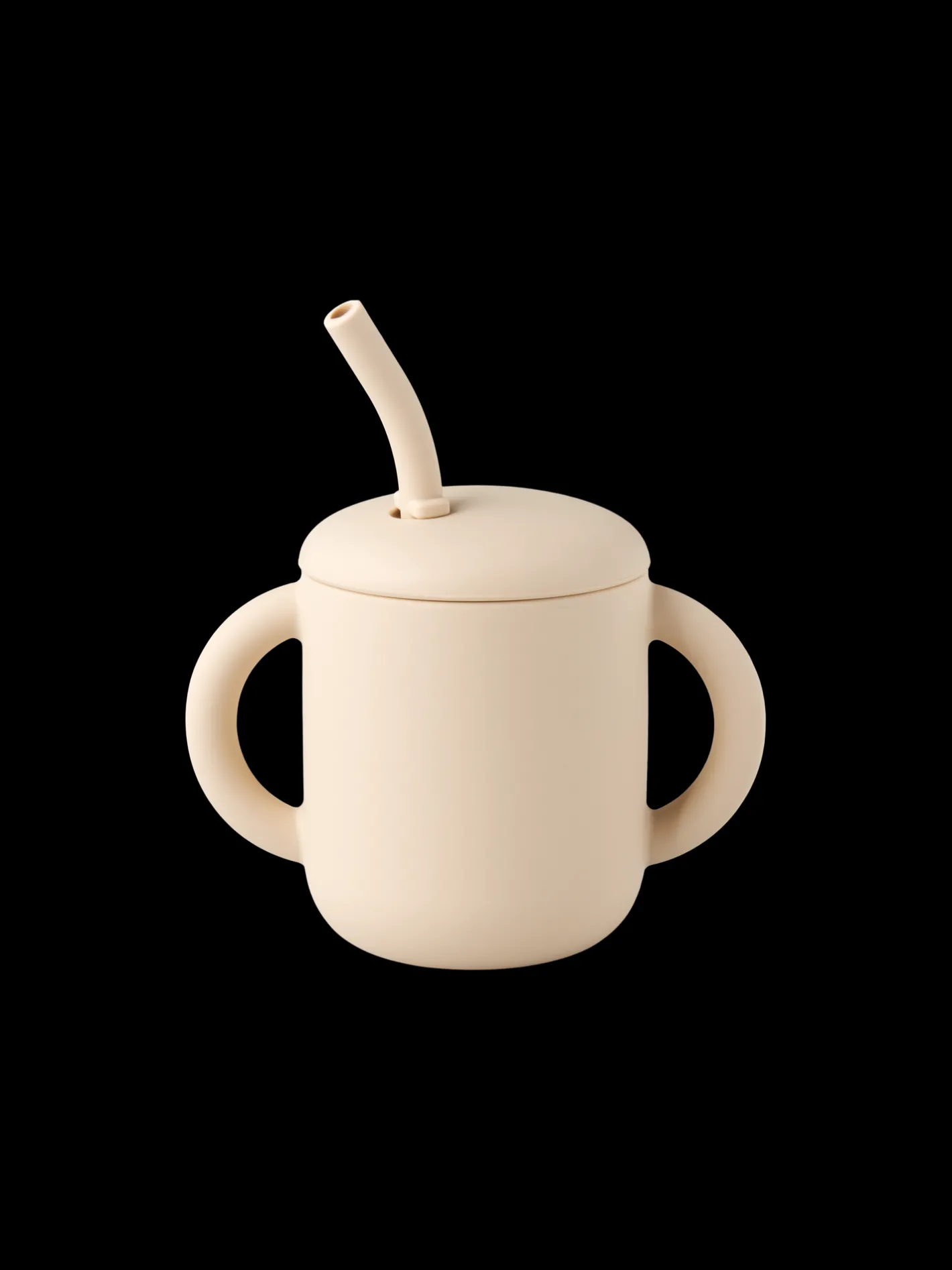 Denne træningskop fra Mushie kommer med et aftageligt låg og et skånsomt sugerør. De to håndtag gør den praktisk og nem at holde for de kære små. Den er lavet af fødevaregodkendt silikone.Koppen kan hjælpe med at opbygge finmotorikken og overgå fra flaske til kop. Den anbefalede alder for dette produkt er 6 måneder og opefter.Søstrene anbefaler at rengøre den med varmt sæbevand og lade den lufttørre.Bemærk venligst, at produktet altid skal bruges under opsyn af en voksen. Undersøg produktet før hver brug. Afskaf ved tegn på skade eller svaghed, og efterlad aldrig et barn uden opsyn, mens barnet bruger dette produkt.