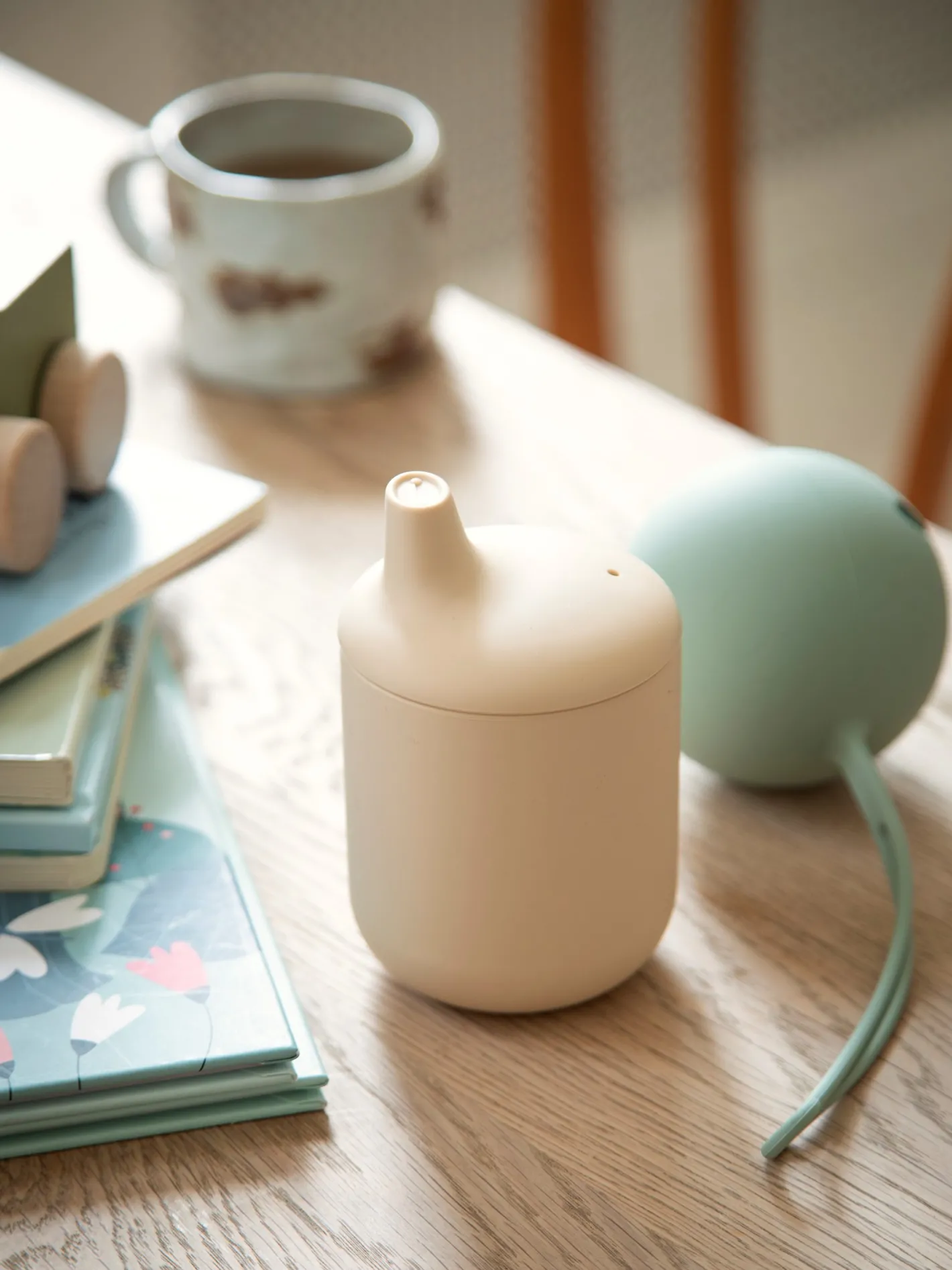 Tudkoppen fra Mushie har håndtag, der gør den ganske praktisk og nem at holde for de kære små. Koppen er lavet af fødevaregodkendt silikone.Koppen kan hjælpe med at opbygge finmotorikken og overgå fra flaske til kop. Den anbefalede alder for dette produkt er 6 måneder og opefter.Det aftagelige låg på denne kop kan udskiftes med Mushies træningskop med sugerør. Søstrene anbefaler, at tudkoppen rengøres med varmt sæbevand og lufttørres.Bemærk venligst, at produktet altid skal bruges under opsyn af en voksen. Undersøg produktet før hver brug. Hvis det bruges i en mikrobølgeovn, løft da venligst låget for at undgå trykopbygning, og kontrollér væsketemperaturen, før De serverer det eller drikker af tudkoppen. Den maksimale temperatur er 350 °F (ca. 176 °C).