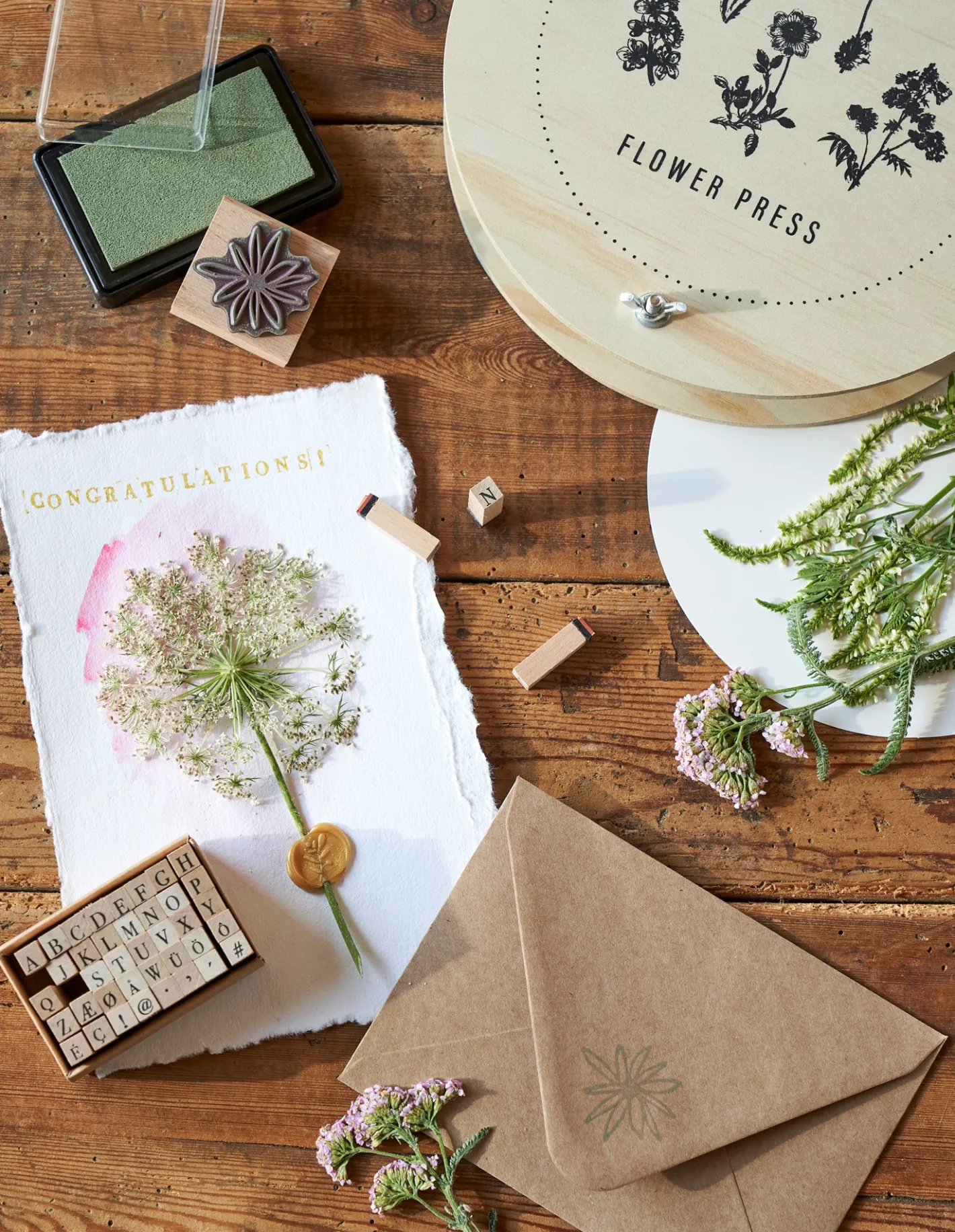 Søstrenes alfabetstempler er lavet af gummi og FSC®-certificeret fyrretræ.”Omgiv Dem med gode materialer og de rette værktøjer, og oplev, hvordan Deres kreativitet blomstrer,” siger Anna.