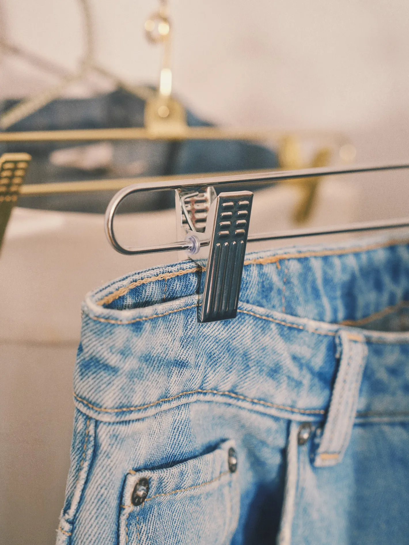 Søstrenes bøjle er lavet af jern og har 2 klemmer, hvilket gør den ideelle til bukser og nederdele.