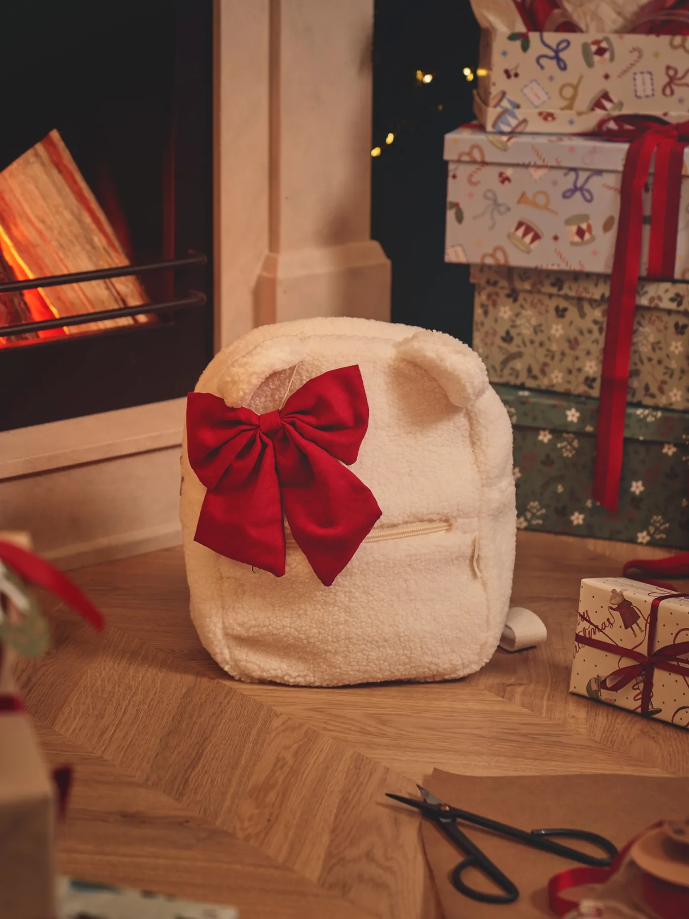 Søstrenes rygsæk til børn er lavet af et blødt teddystof. Det er en herlig tilføjelse til de kære smås samling af accessories.