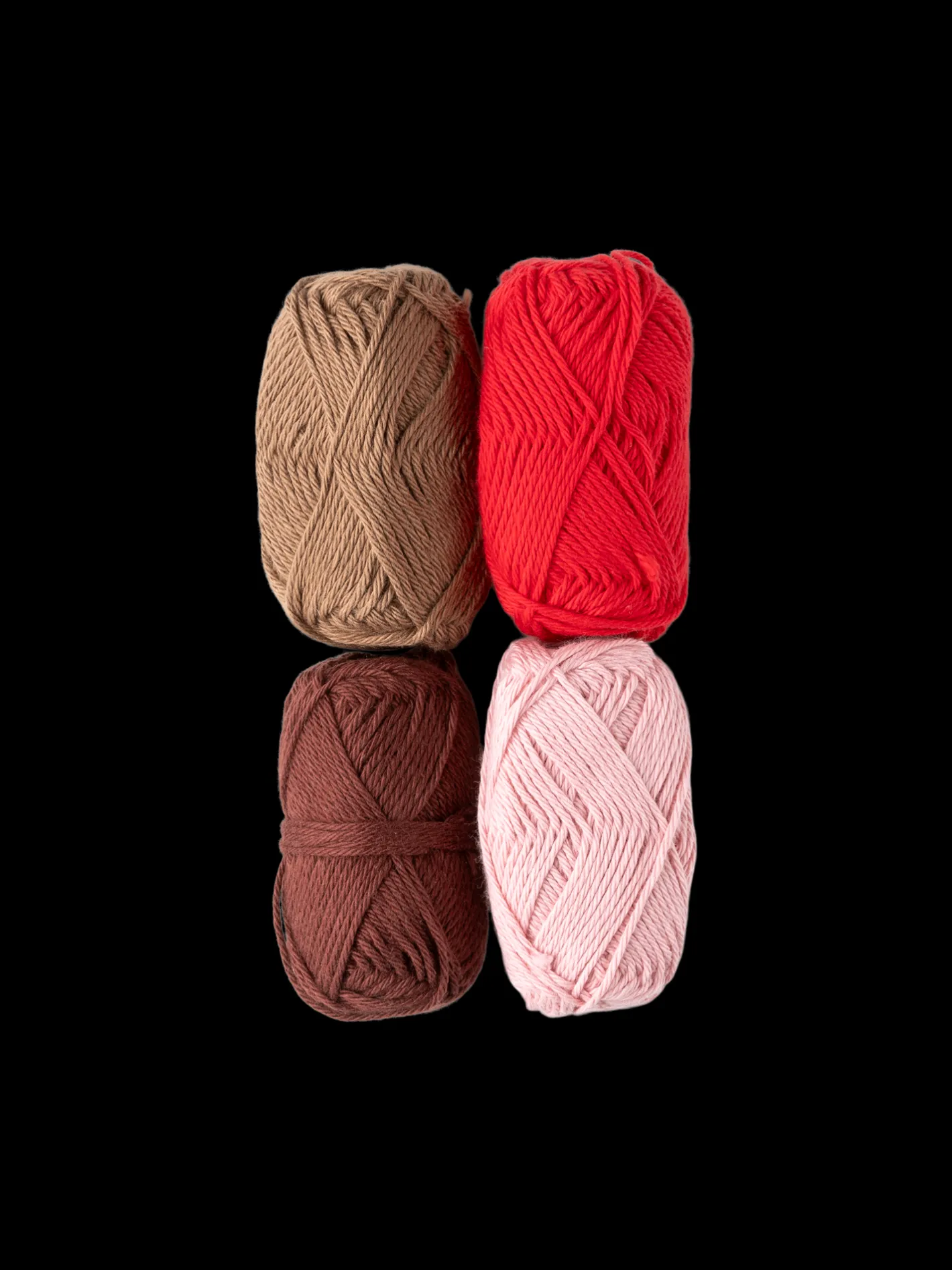 Søstrenes bomuldsgarn er STANDARD 100 by OEKO-TEX®-certificeret. Der er 4 forskellige farver i et sæt.