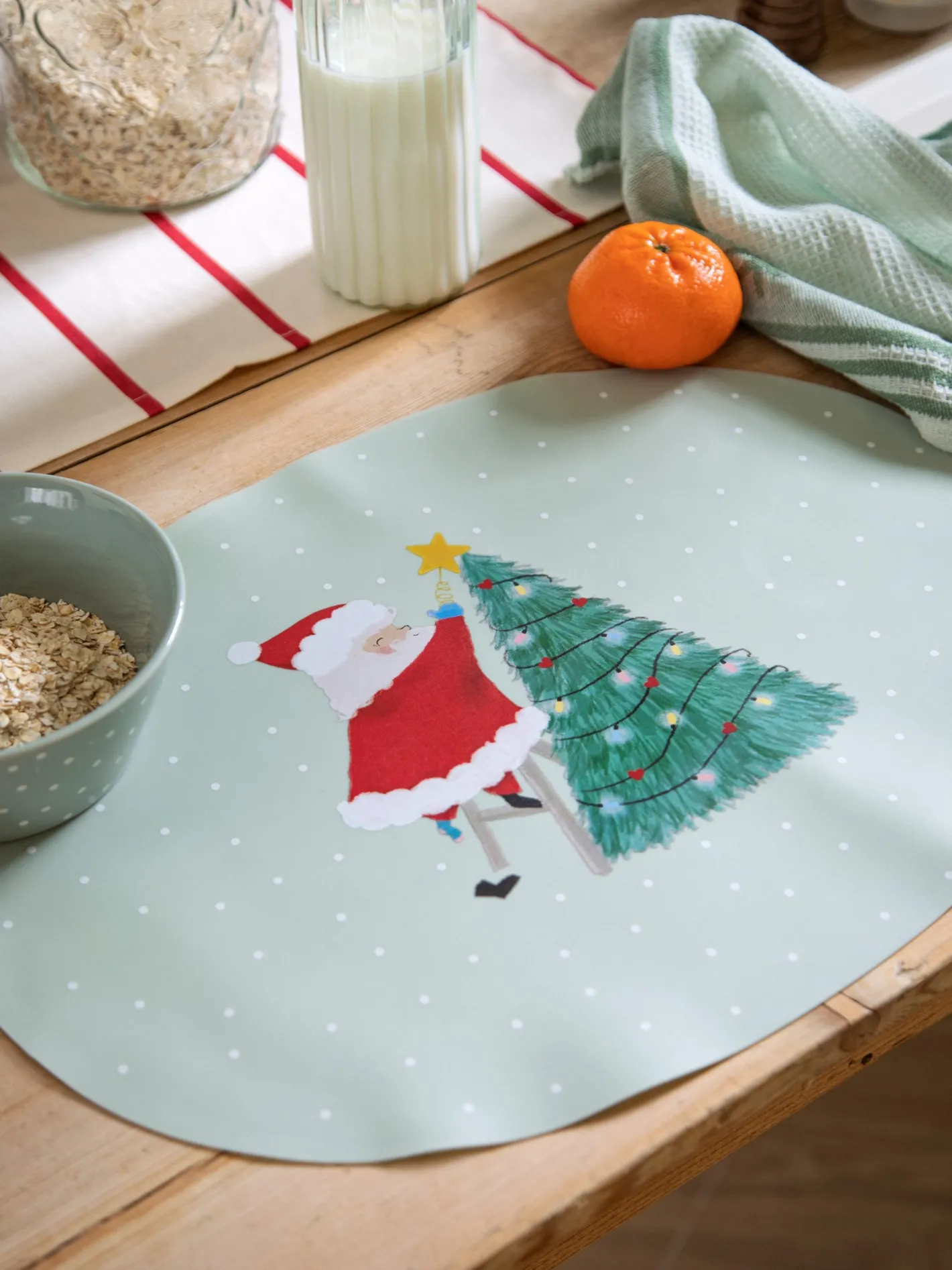 Søstrenes dækkeserviet er lavet af silikone og har et skønt juledesign, der giver et festligt udtryk.