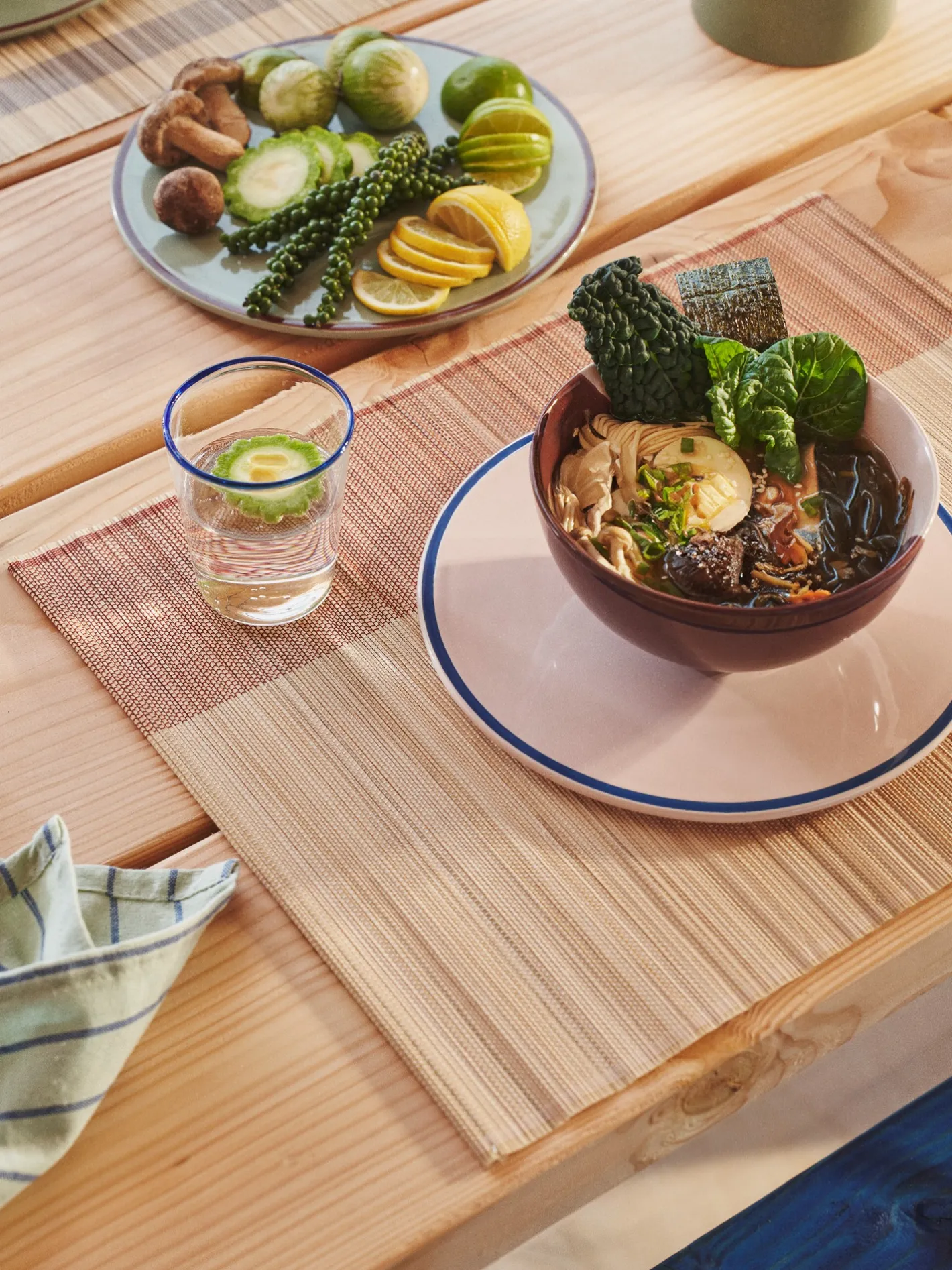 Søstrenes dækkeserviet er lavet af 100 % FSC®-certificeret bambus og måler 45 x 35 cm. Den kan rulles sammen for nem opbevaring efter Deres måltid.