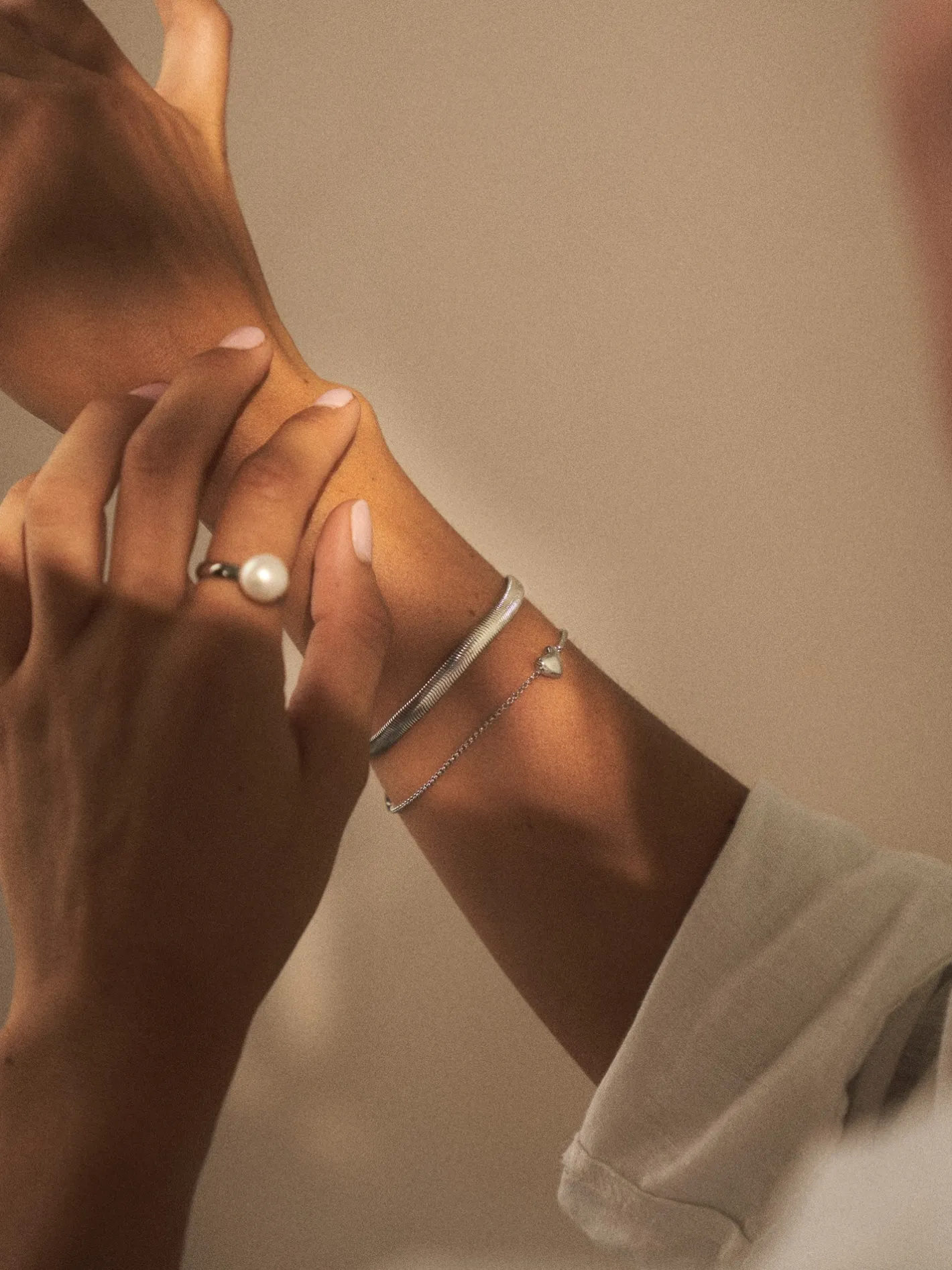 Dawn-armbåndet fra Bud to Rose er et tidløst smykke. Det er lavet af rustfrit stål og har en længde på 15,5 cm med en 3 cm forlængelse.Anna og Clara gør Dem venligst opmærksom på, at De bør undgå direkte kontakt med fugt og væske for en længere holdbarhed af guldbelægningen. Desuden anbefales det at tage smykker af, før De går i bad, træner og sover for at beskytte deres skinnende overflade.