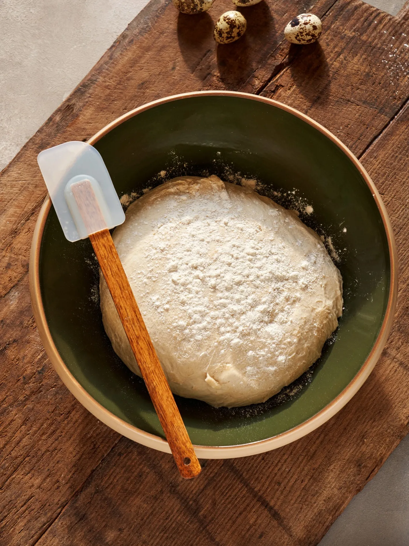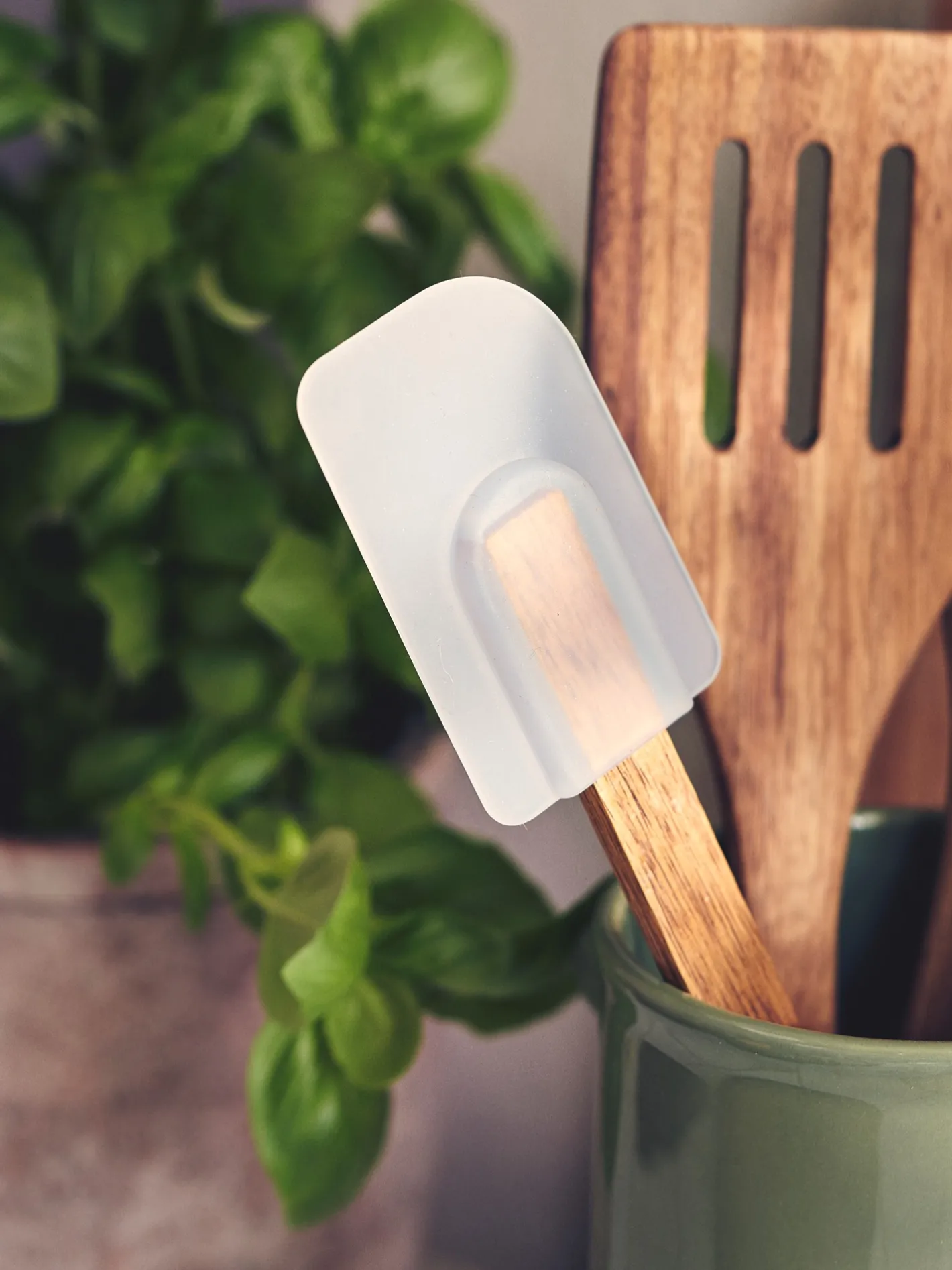 Søstrenes spatel er lavet af FSC®-certificeret akacietræ og silikone og måler 28,5 cm i længden.