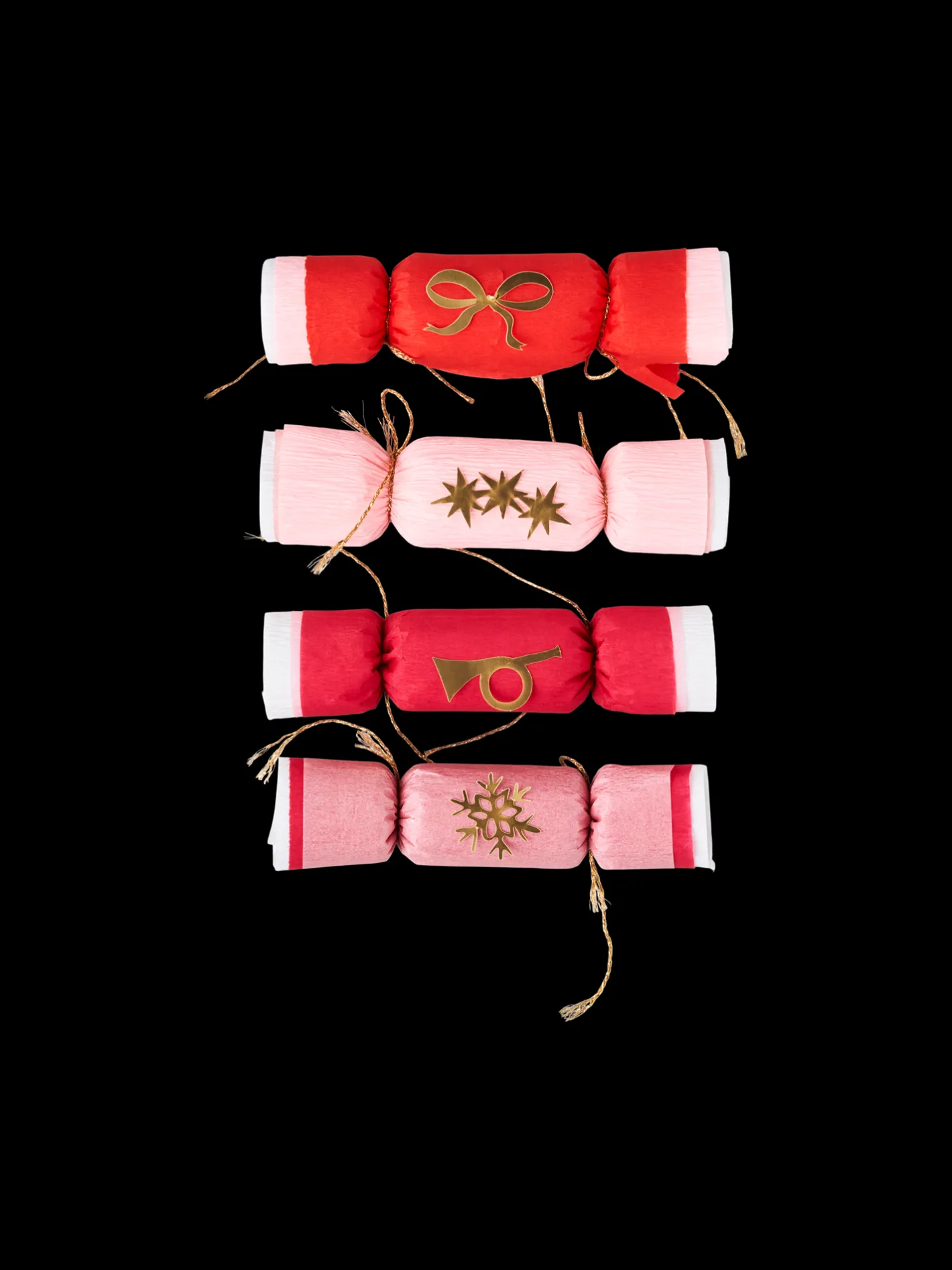 Søstrenes dekorative juleknallerter er lavet af 100% FSC®-certificeret papir. Hver pakke indeholder 4 knallerter.Søstrene gør venligst opmærksom på, at knallerterne ikke er fyldte og udelukkende skal bruges til dekoration.