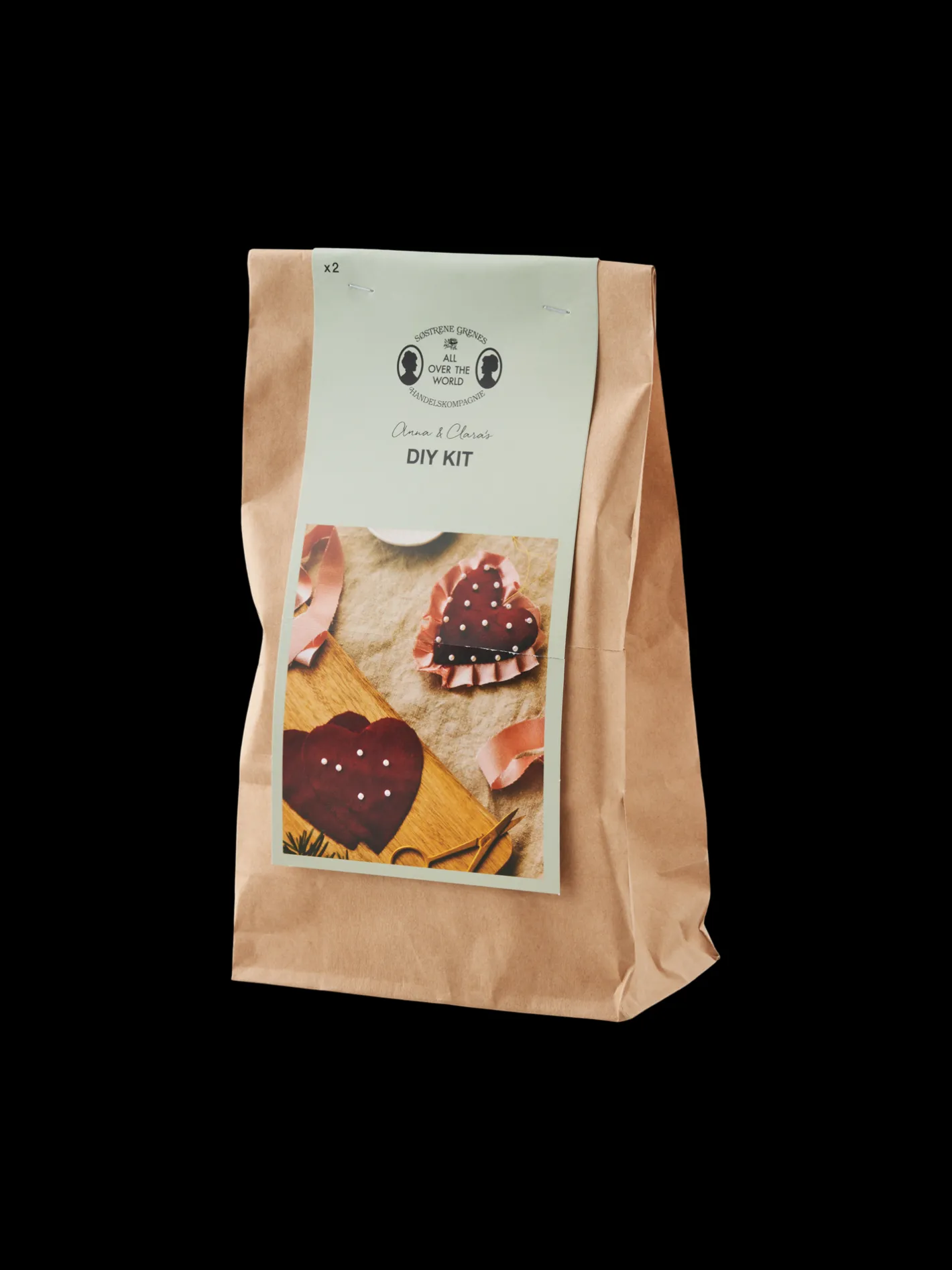 Søstrenes DIY-sæt indeholder materialer til at lave to herlige julehjerter.