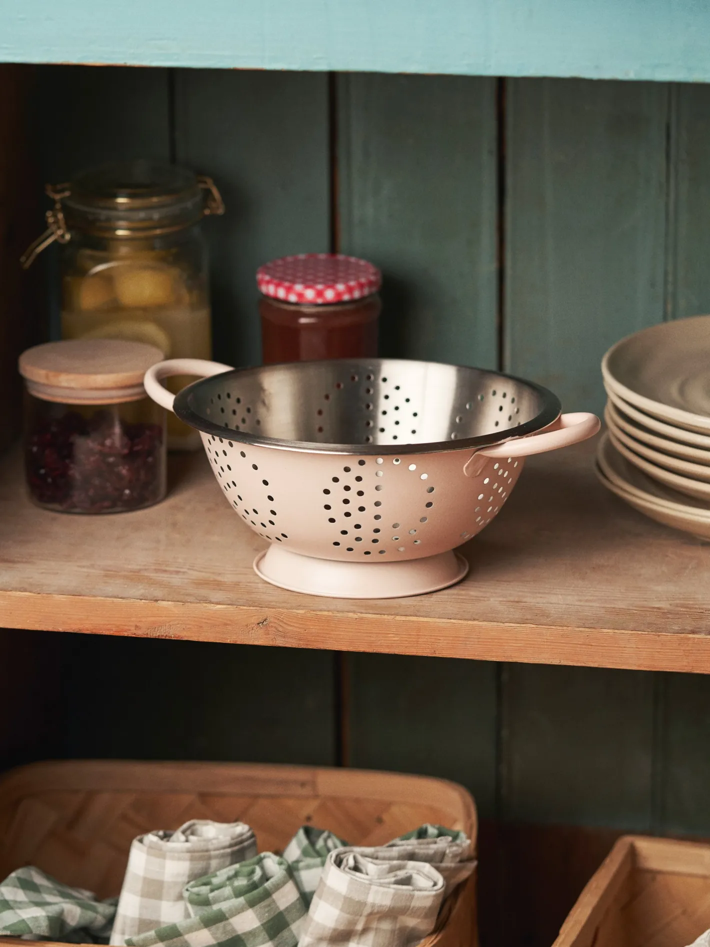 Søstrenes dørslag er en ideel tilføjelse til køkkenet, nyttig til at hælde vandet fra pasta eller vaske frugt og grøntsager.