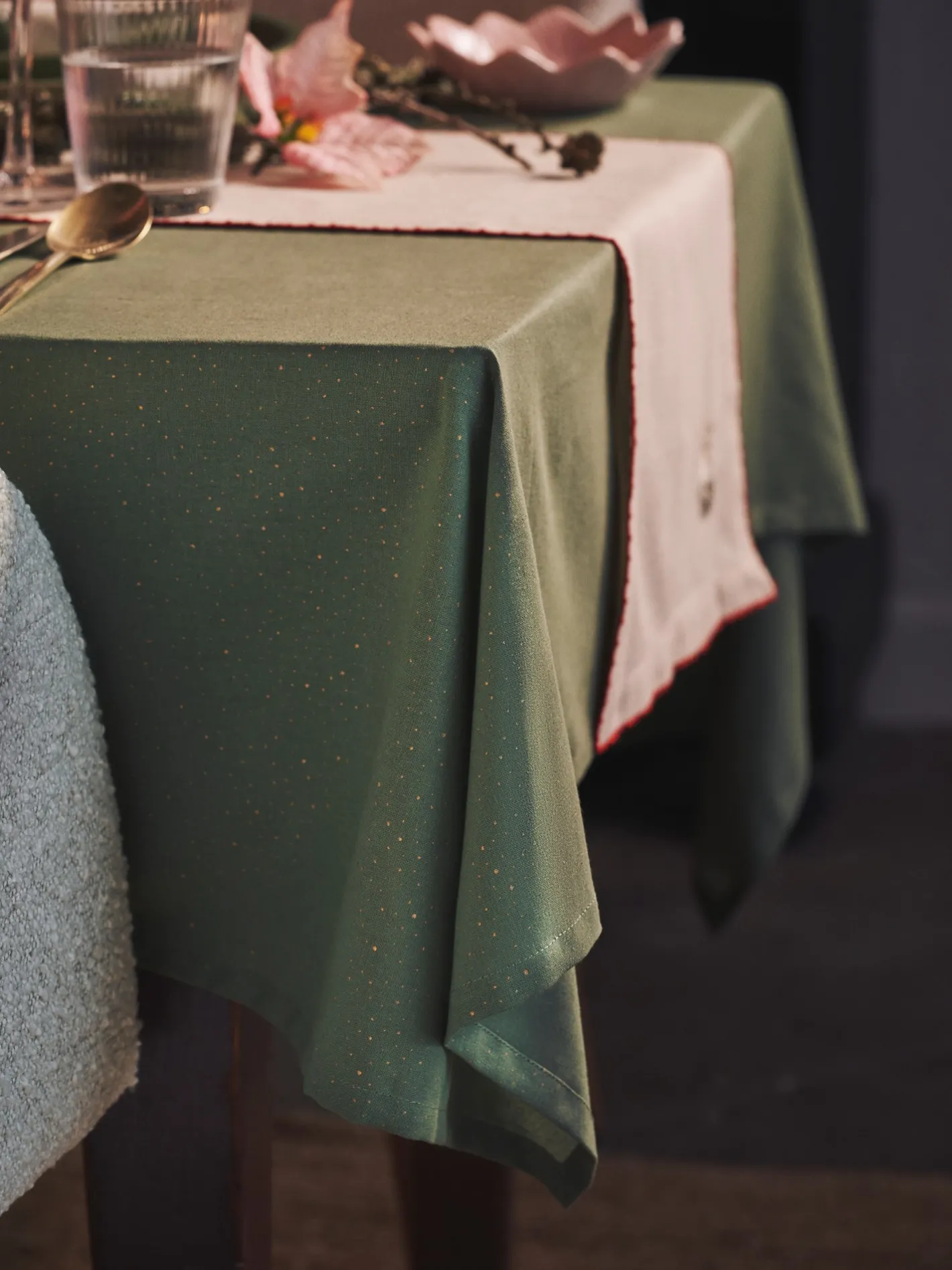 Søstrenes dug er lavet af STANDARD 100 by OEKO-TEX®-certificeret* bomuld. Den måler 240 x 140 cm, og dugens fine glimmer tilføjer et glitrende strejf på julebordet.*22.HIN.14007 HOHENSTEIN HTTI