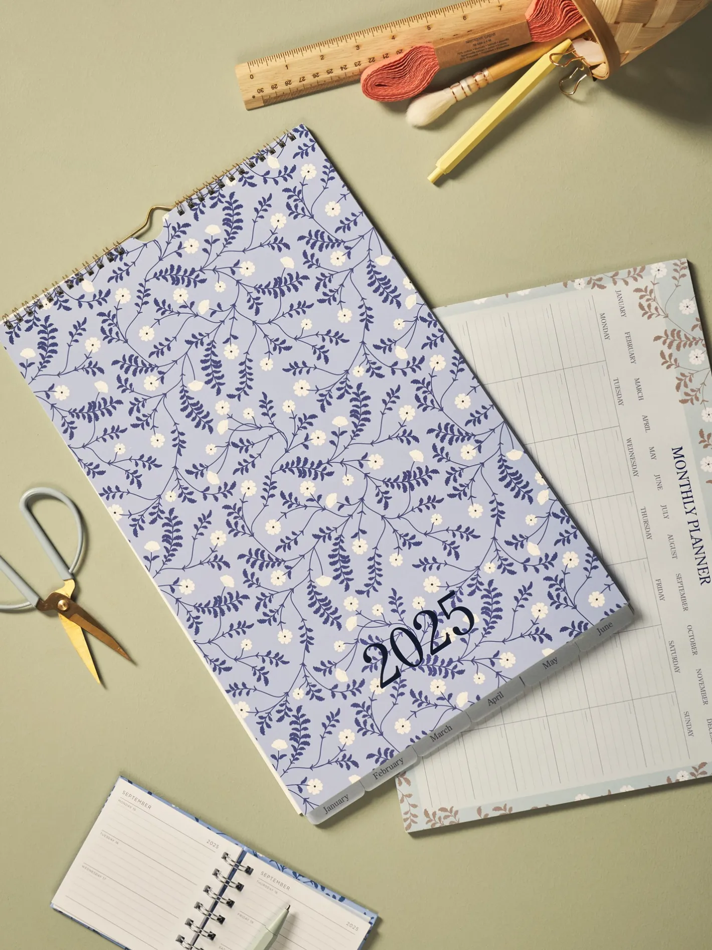 Søstrenes familiekalender er FSC®-certificeret. Den har nyttige indeksfaner for hver måned og en krog i toppen til at hænge den på væggen.