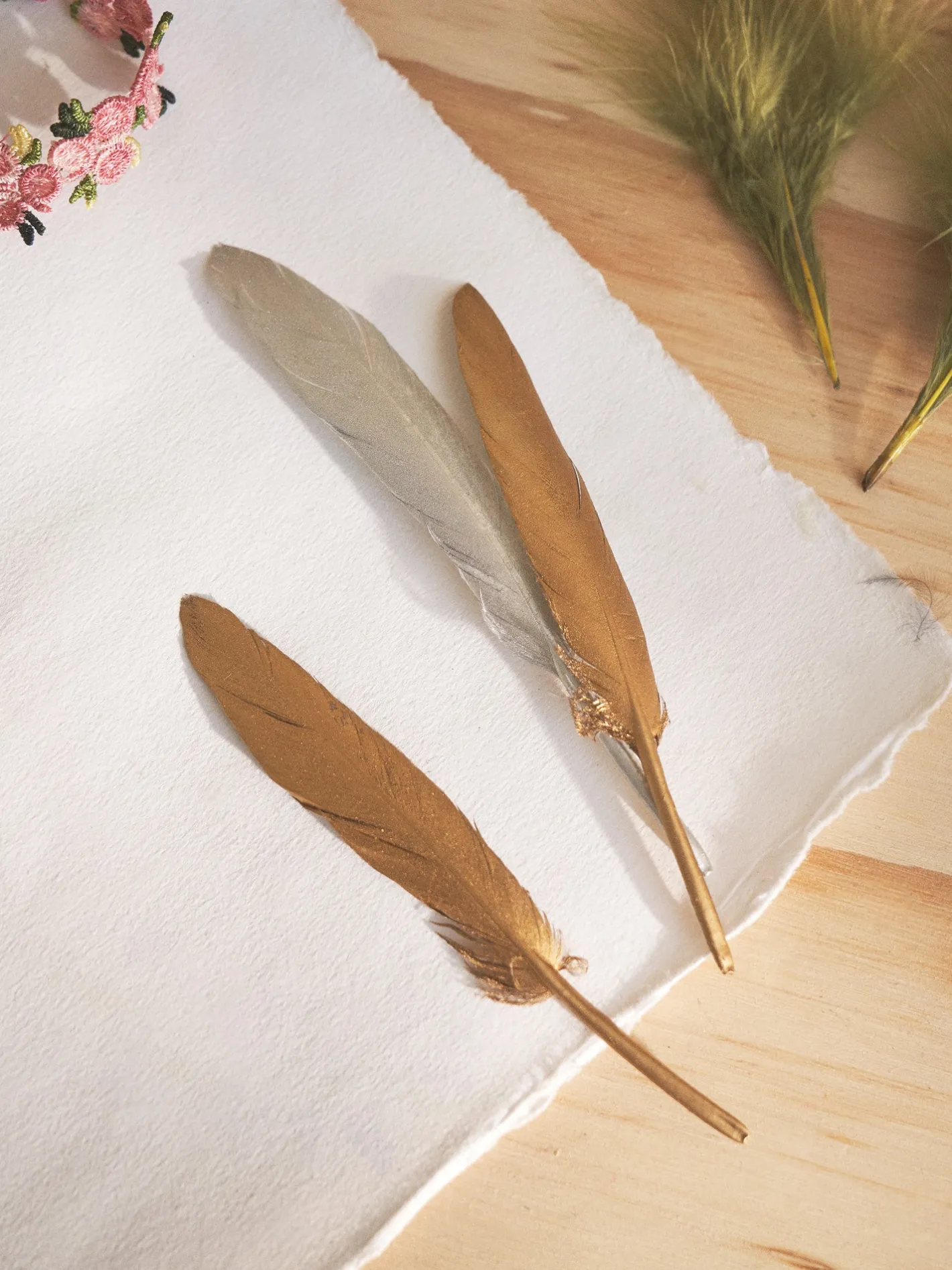 De kan bruge fjer i DIY-projekter for at skabe dekorationer, der vil bringe glæde i mange år fremover. Søstrene gør venligst opmærksom på, at størrelse og udtryk kan variere en smule, da dette er et naturligt produkt.
