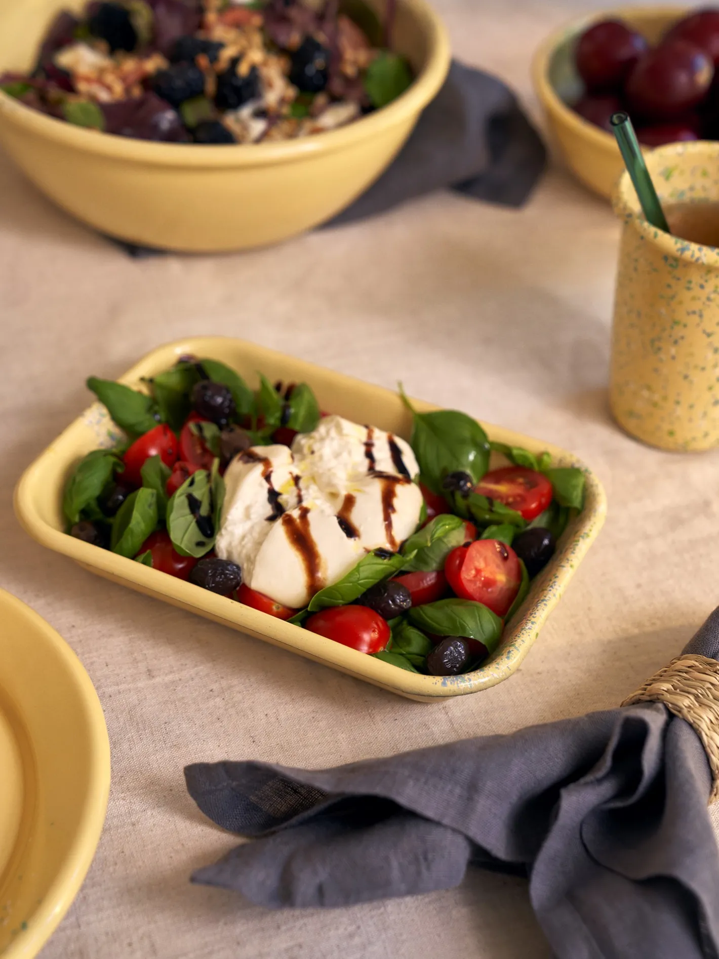 Søstrene gør Dem venligst opmærksom på, at denne vare kun forhandles online.Flow Fest bakken fra Kapka måler 22 x 16 x 3,7 cm. Den kan tåle opvaskemaskine.”Det ligner næsten konfetti,” udbryder nevøen, mens han læner sig frem for at snuppe en håndfuld jordbær fra bakken, som Anna har stillet frem. Søstrene har inviteret børnene på en picnic i deres yndlingspark. Deres picnickurv er fyldt til randen med delikate snacks, forfriskende drikkevarer og praktisk service.”Denne type service er yderst praktisk til picnicture, da den er så let og robust,” forklarer Clara. “Du har ret, kære søster. Men det tager sig også smukt ud på et veldækket bord derhjemme,” tilføjer Anna med et smil.