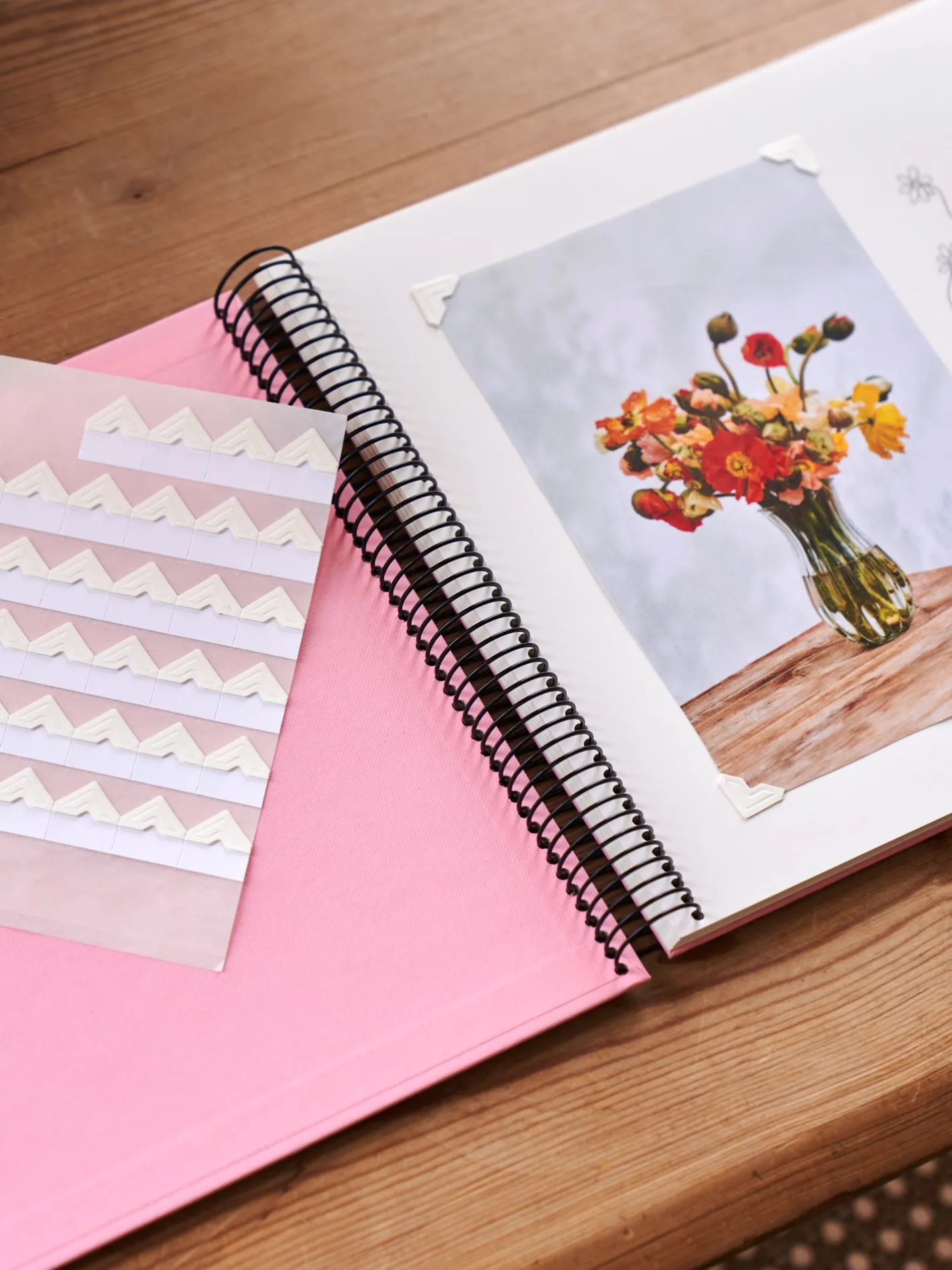 Fotohjørnerne fra Semikolon er lavet af papir og måler 1,2 x 1,2 cm. En pakke indeholder 252 hjørner.