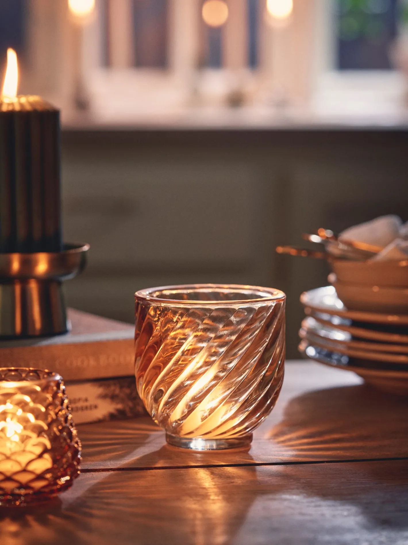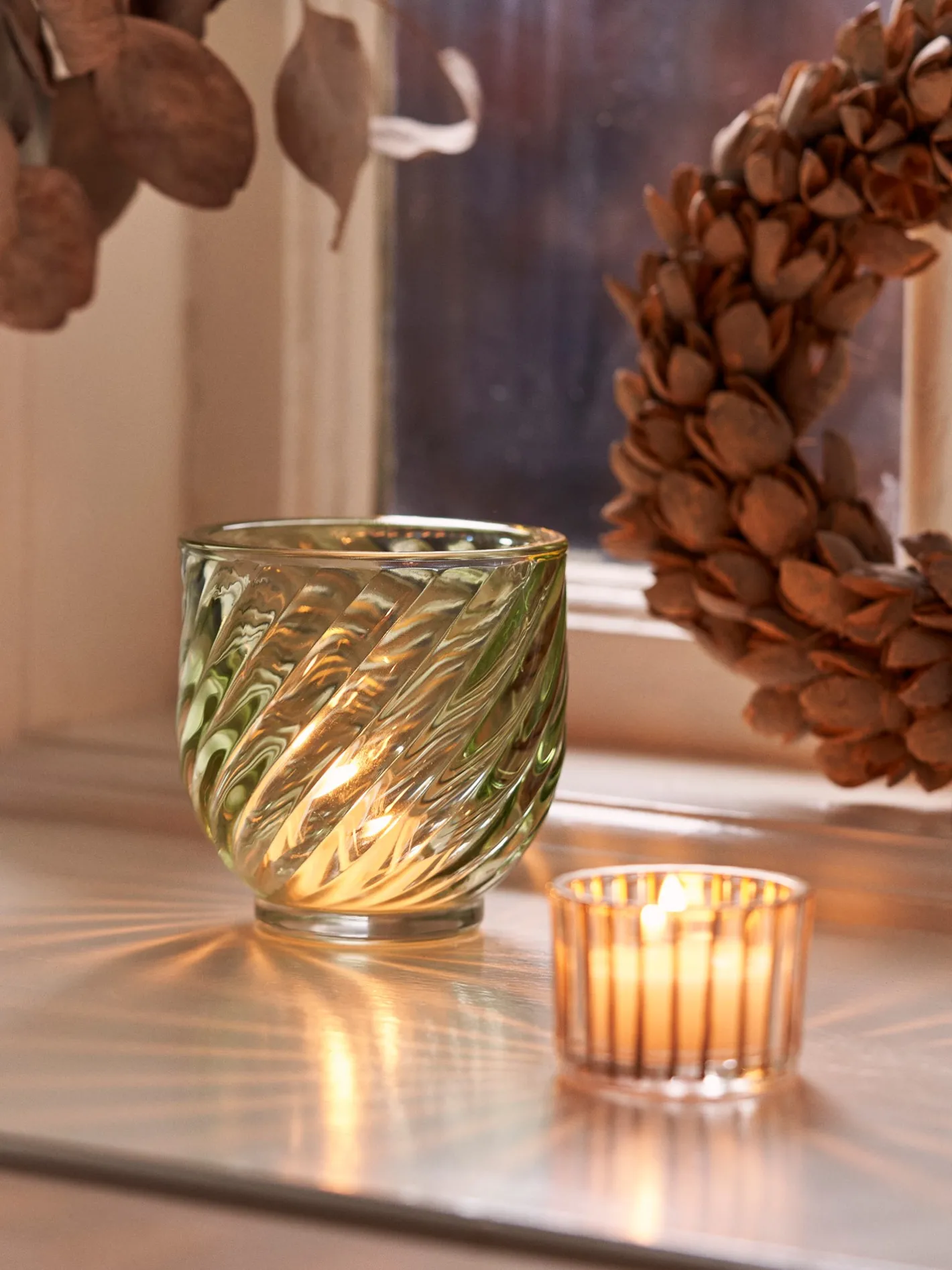 Søstrenes fyrfadsstage har et snoet mønster, der giver et interessant lysspil.