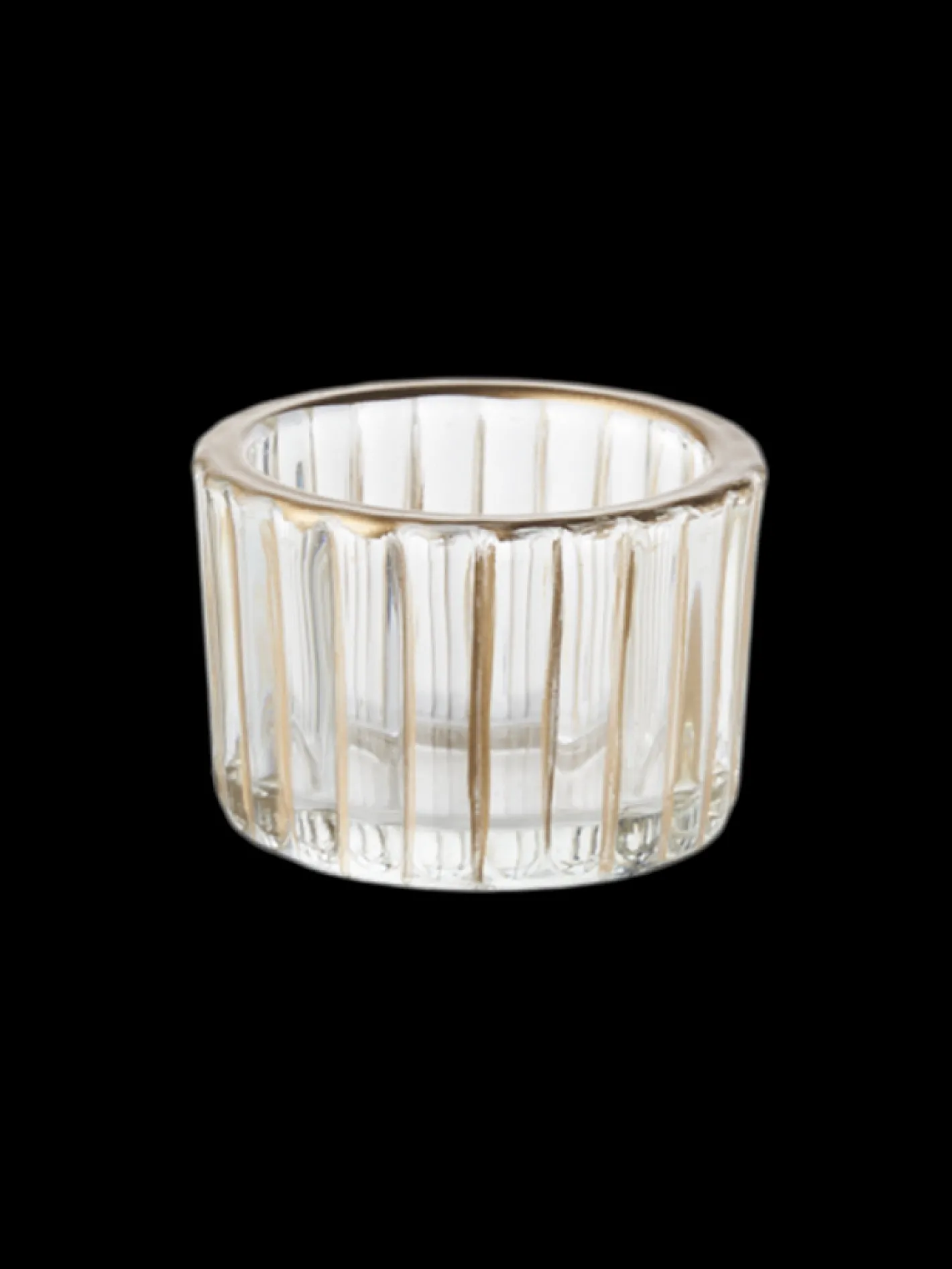 Søstrenes fyrfadsstage i glas måler 5,5 cm i diameter og 6,5 cm i højden.