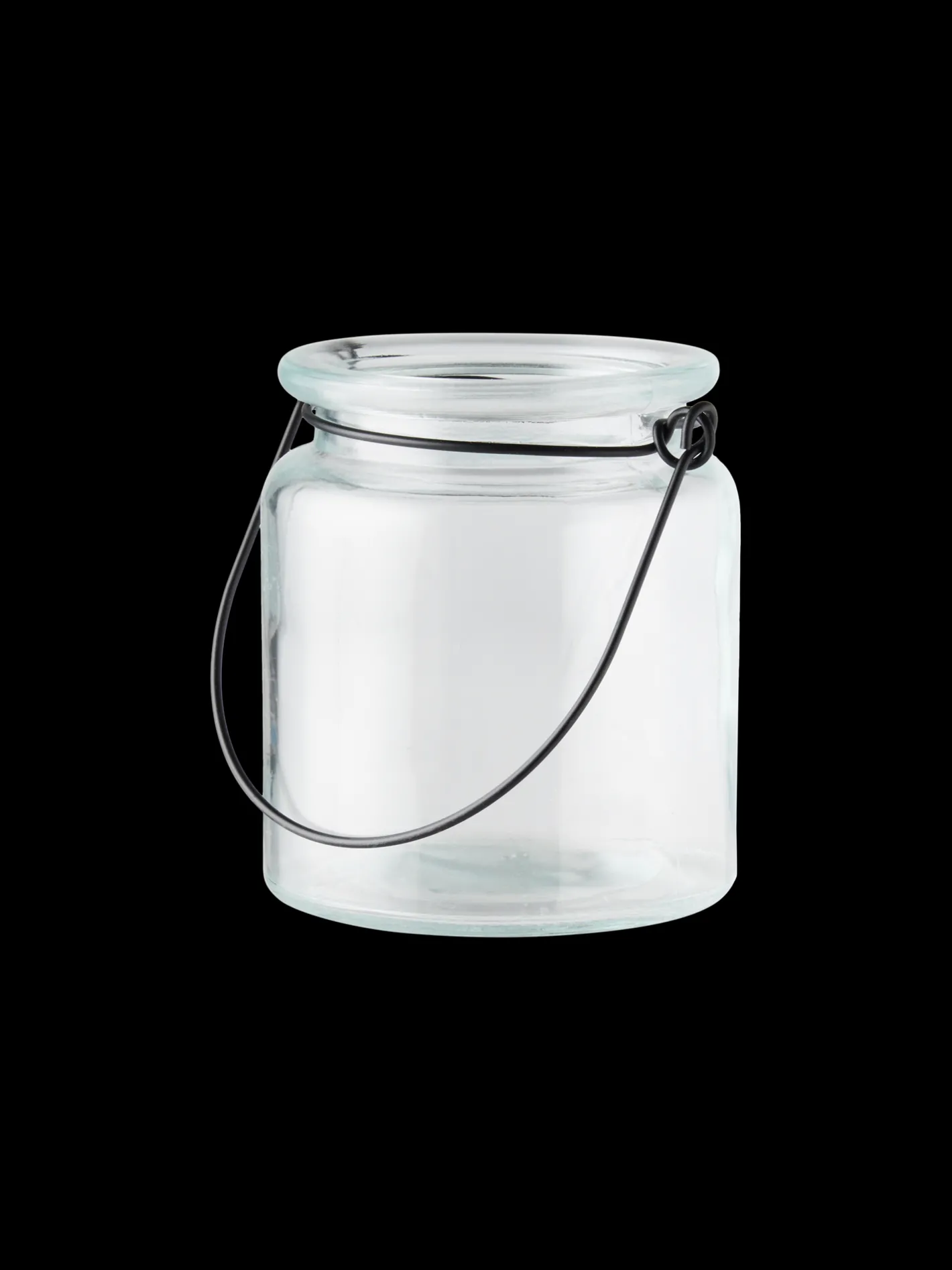 Søstrenes fyrfadsstage er lavet af glas og har et lille metalhåndtag.