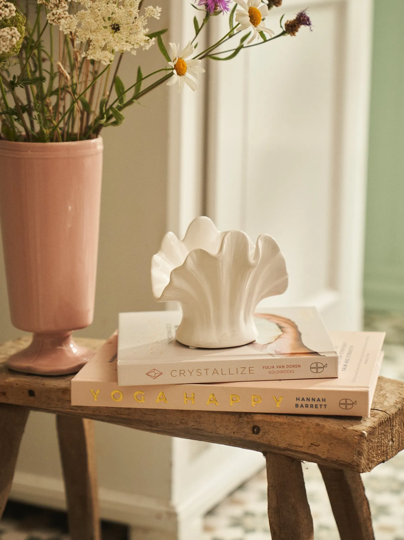 Søstrenes fyrfadsstage har en interessant og organisk form.Søstrene gør venligst opmærksom på, at der er tale om et glaseret produkt, hvorfor udtrykket på det enkelte produkt kan variere en smule.