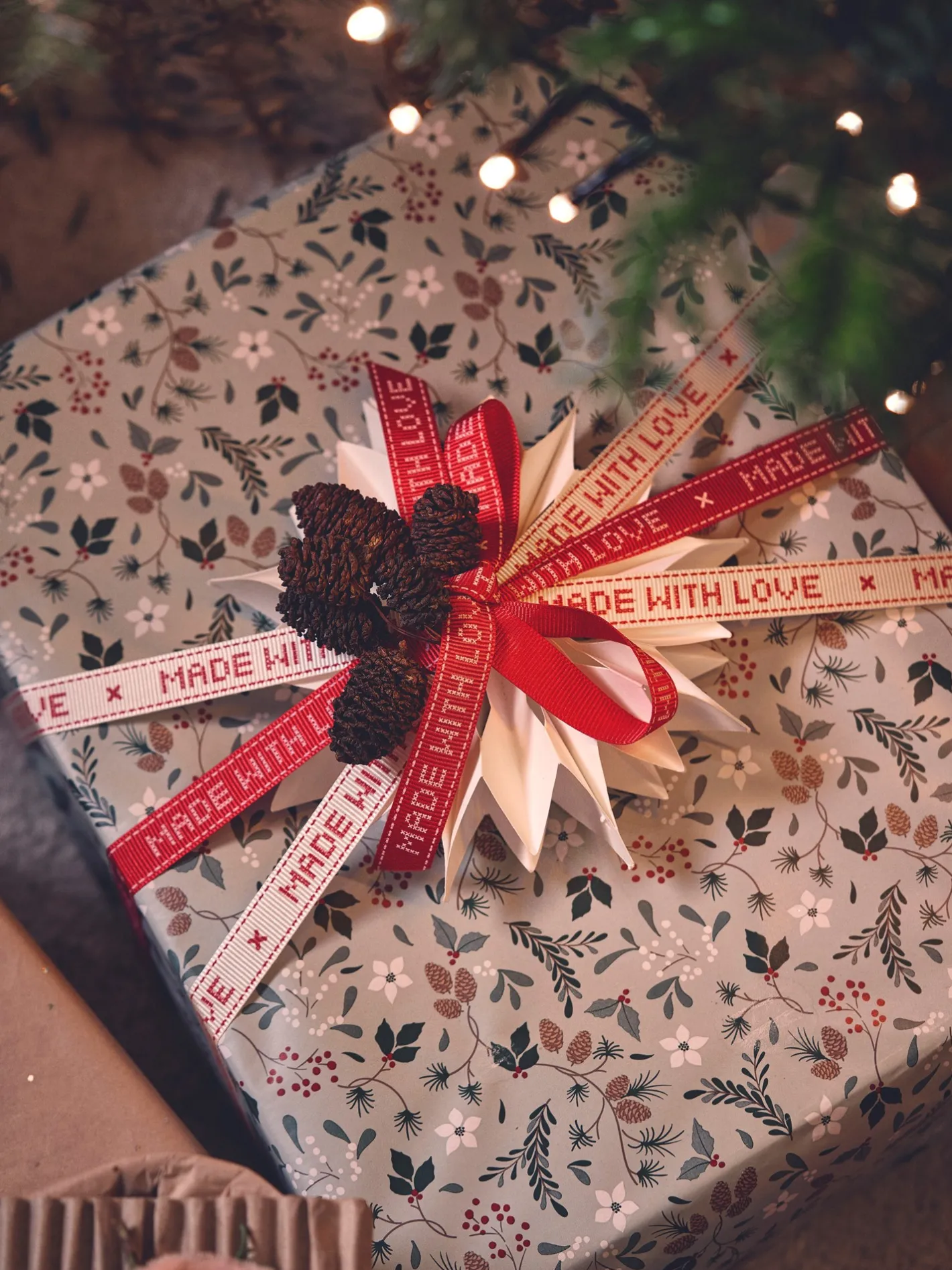 Søstrenes gavepapir er FSC®-certificeret og produceret i Sverige. De kan med fordel overveje at gemme gavepapiret og bruge det igen.