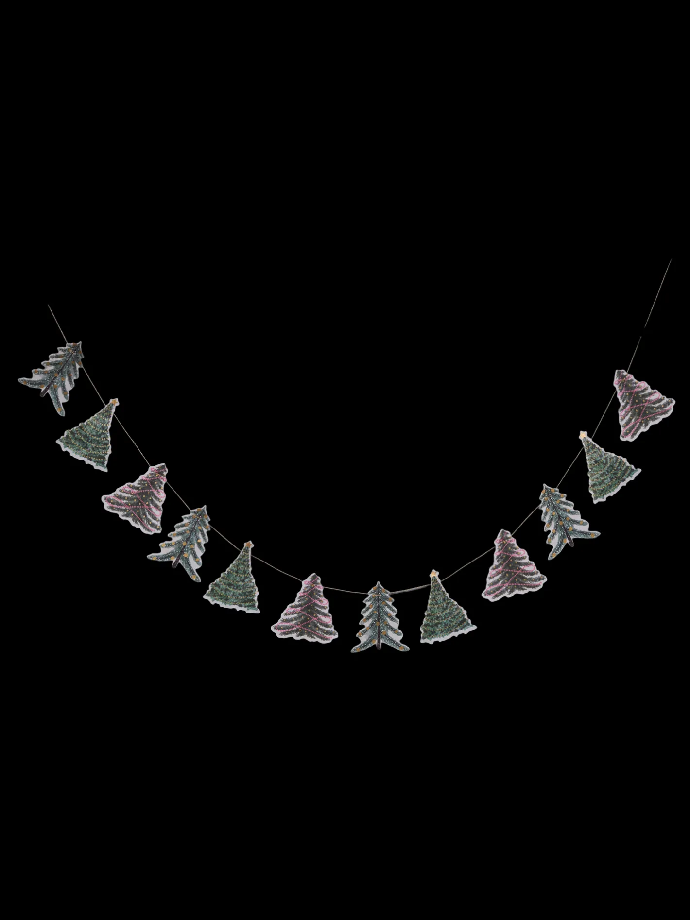 Søstrenes juleguirlande er fremstillet af 90% GRS-certificeret* bomuld. Den kommer med 12 træmotiver, der helt sikkert vil skabe juleglæde.*Certified by Ecocert Greenlife, license number 197533