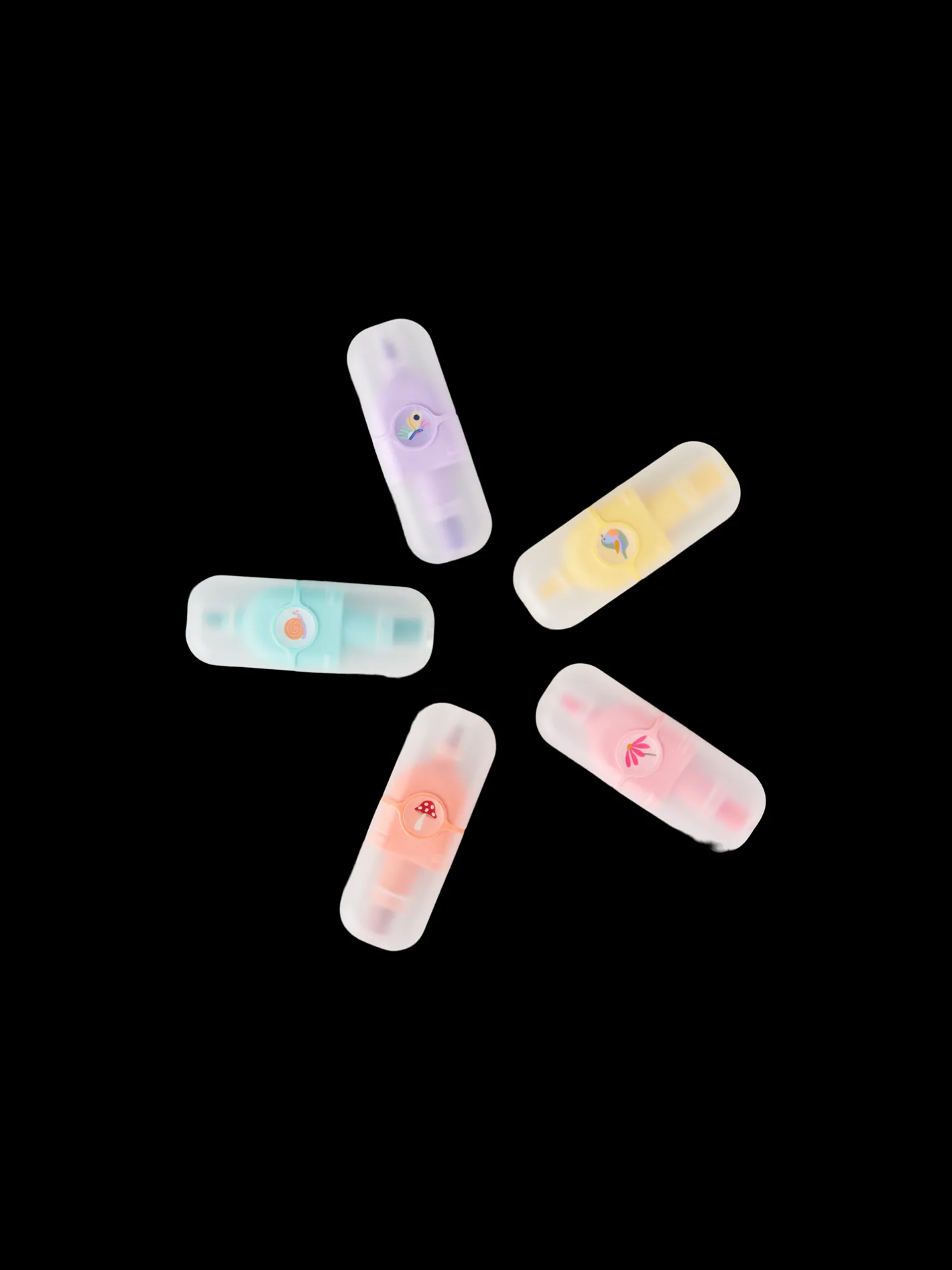 Søstrenes highlightere i forskellige farver har hver især et sødt design.