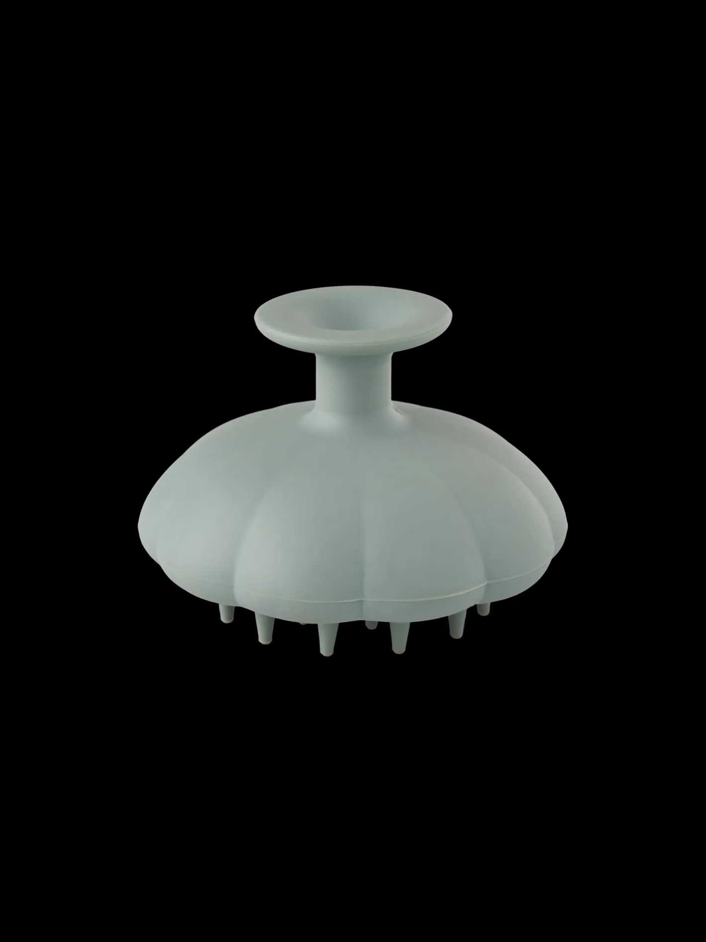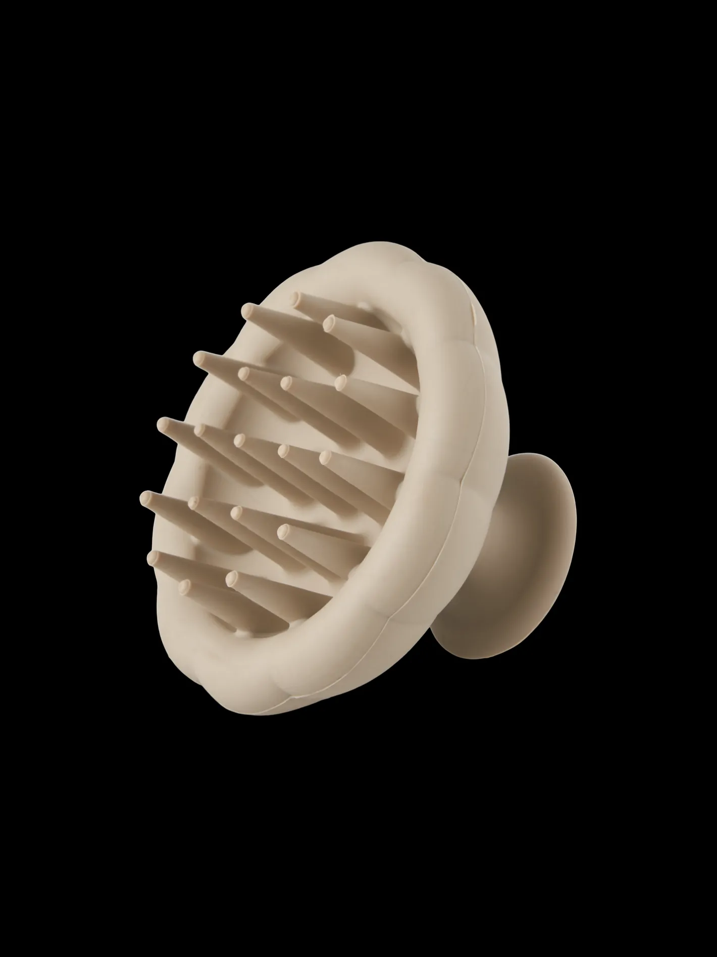 Søstrenes hovedbundsmassør er lavet af silikone og måler 8,4 x 7 cm.