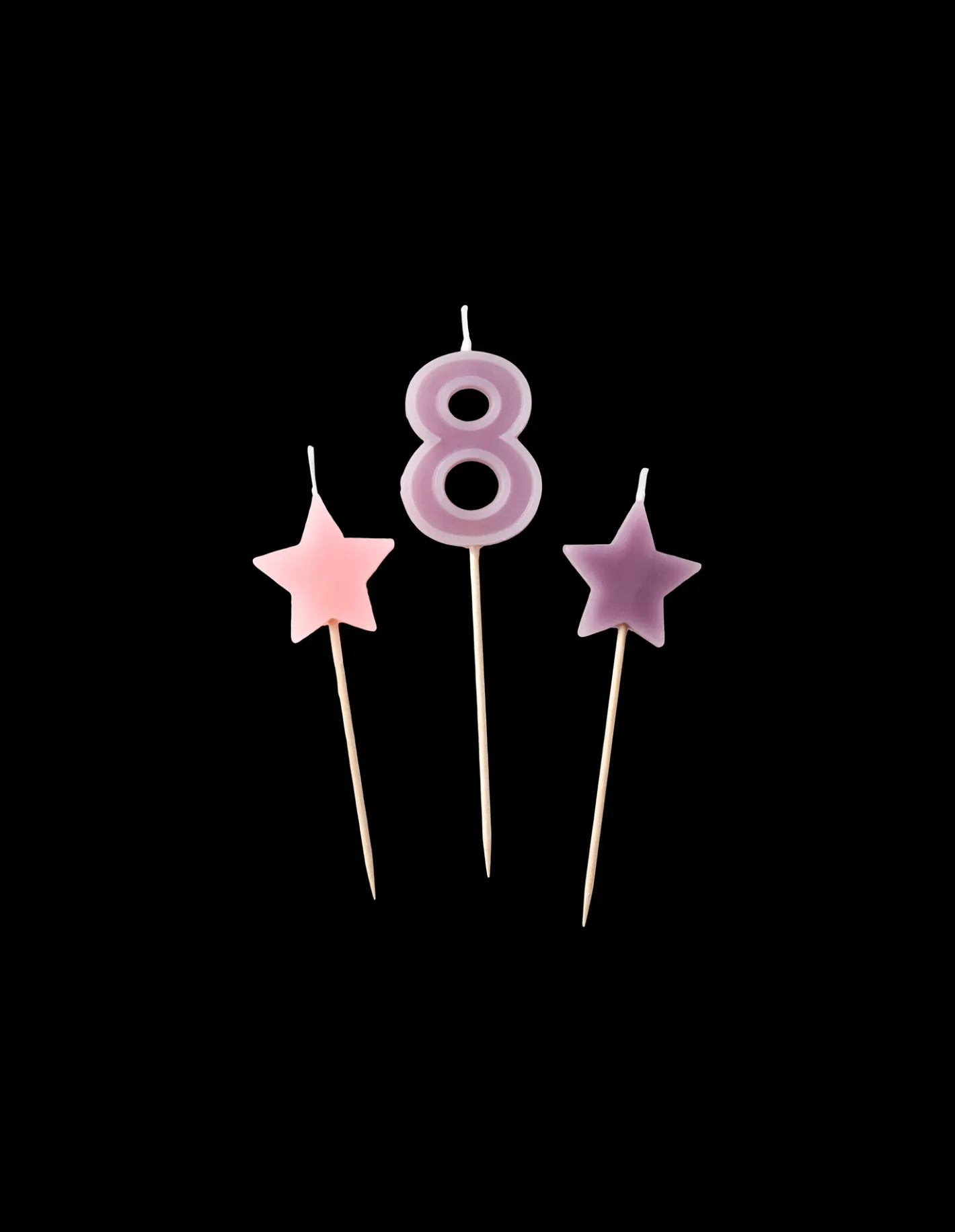 Søstrenes kagelys er lavet af paraffin, og hver pakke indeholder et tallys samt to stjerneformede lys. Tallet ‘8’ måler 11,5 x 3 cm, og de to stjerner måler hver 9 x 3 cm. Alle tre stearinlys kommer med et spyd, der måler 7 cm i længden. “Skønheden ligger i detaljerne,” som Anna og Clara gerne siger.
