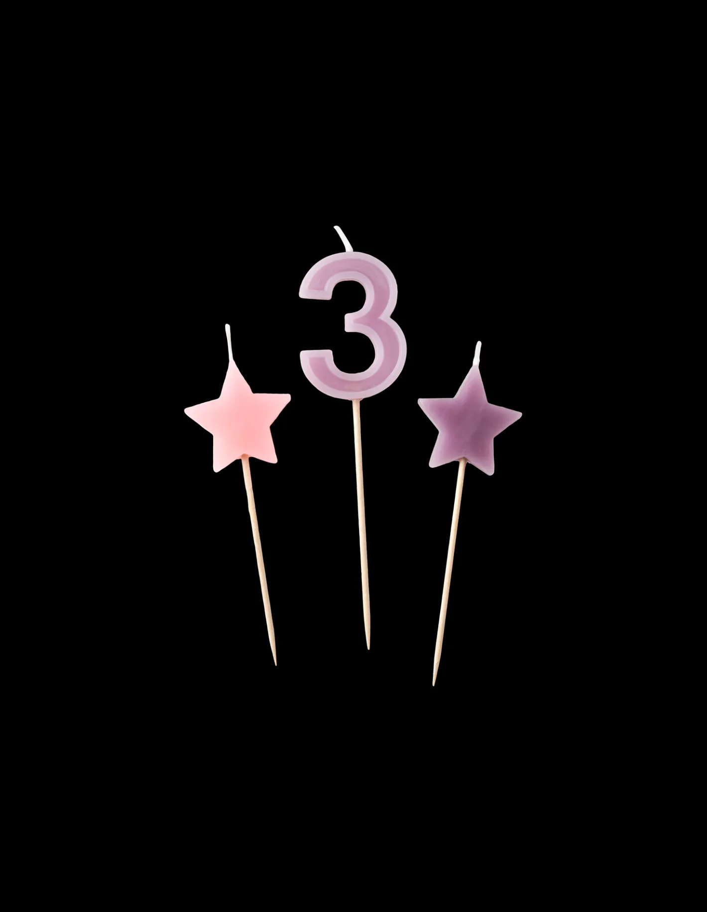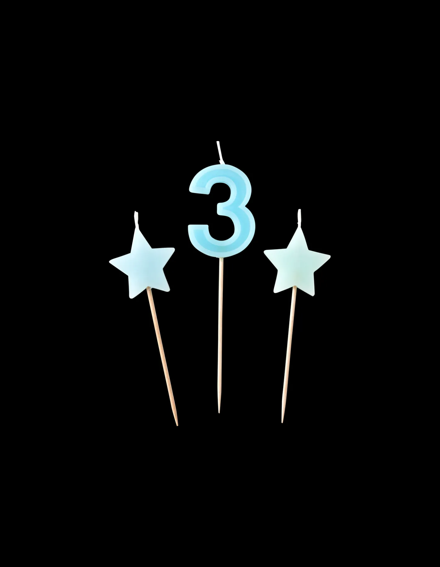 Søstrenes kagelys er lavet af paraffin, og hver pakke indeholder et tallys samt to stjerneformede lys. Tallet ‘3’ måler 11,5 x 3 cm, og de to stjerner måler hver 9 x 3 cm. Alle tre stearinlys kommer med et spyd, der måler 7 cm i længden. “Skønheden ligger i detaljerne,” som Anna og Clara gerne siger.