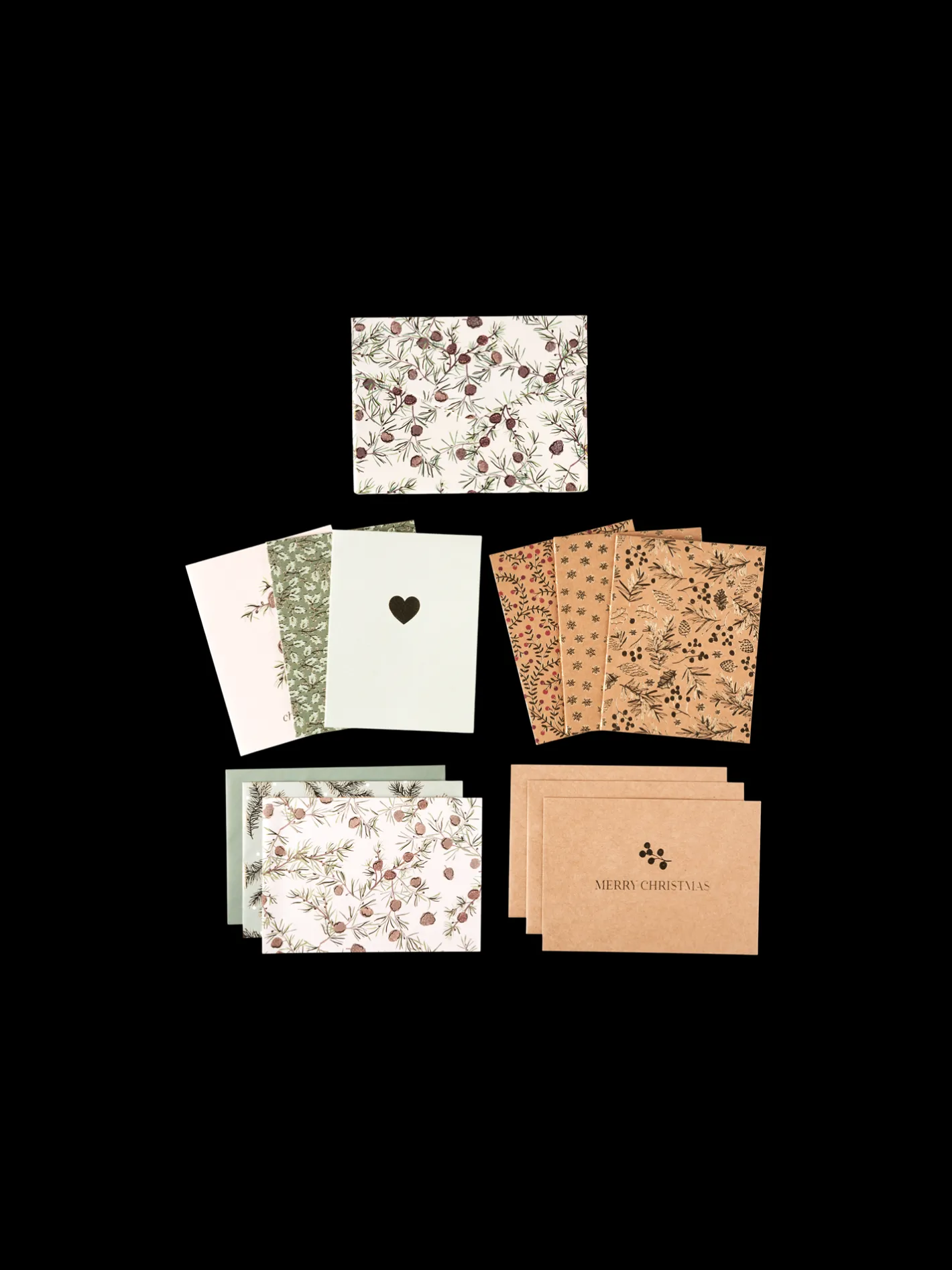 Søstrenes kort og konvolutter er 100% FSC®-certificerede. En æske indeholder 6 kort med matchende konvolutter, der måler 11,4 x 16,2 cm.