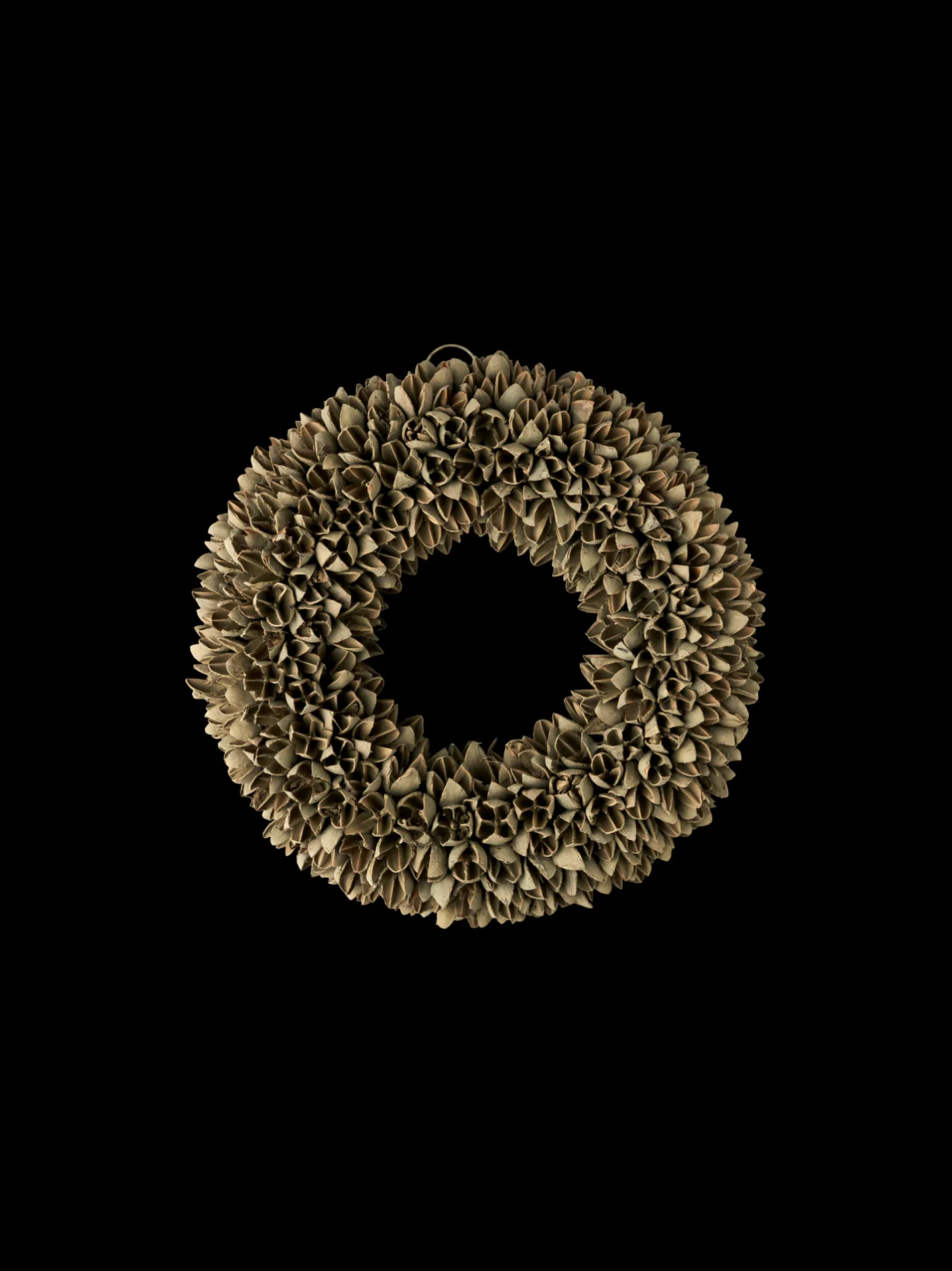 Denne fine krans fra det hollandske mærke Couronne er lavet af farvede bakulibælge og kokosfibre. Hæng den på en dør eller i et vindue for at få et element af natur i Deres indretning, eller skab en dekoration med LED-lys for at løfte Deres borddækning.Søstrene gør venligst opmærksom på, at dette er et naturmateriale, hvorfor produktet kan variere en smule i farve og udtryk.