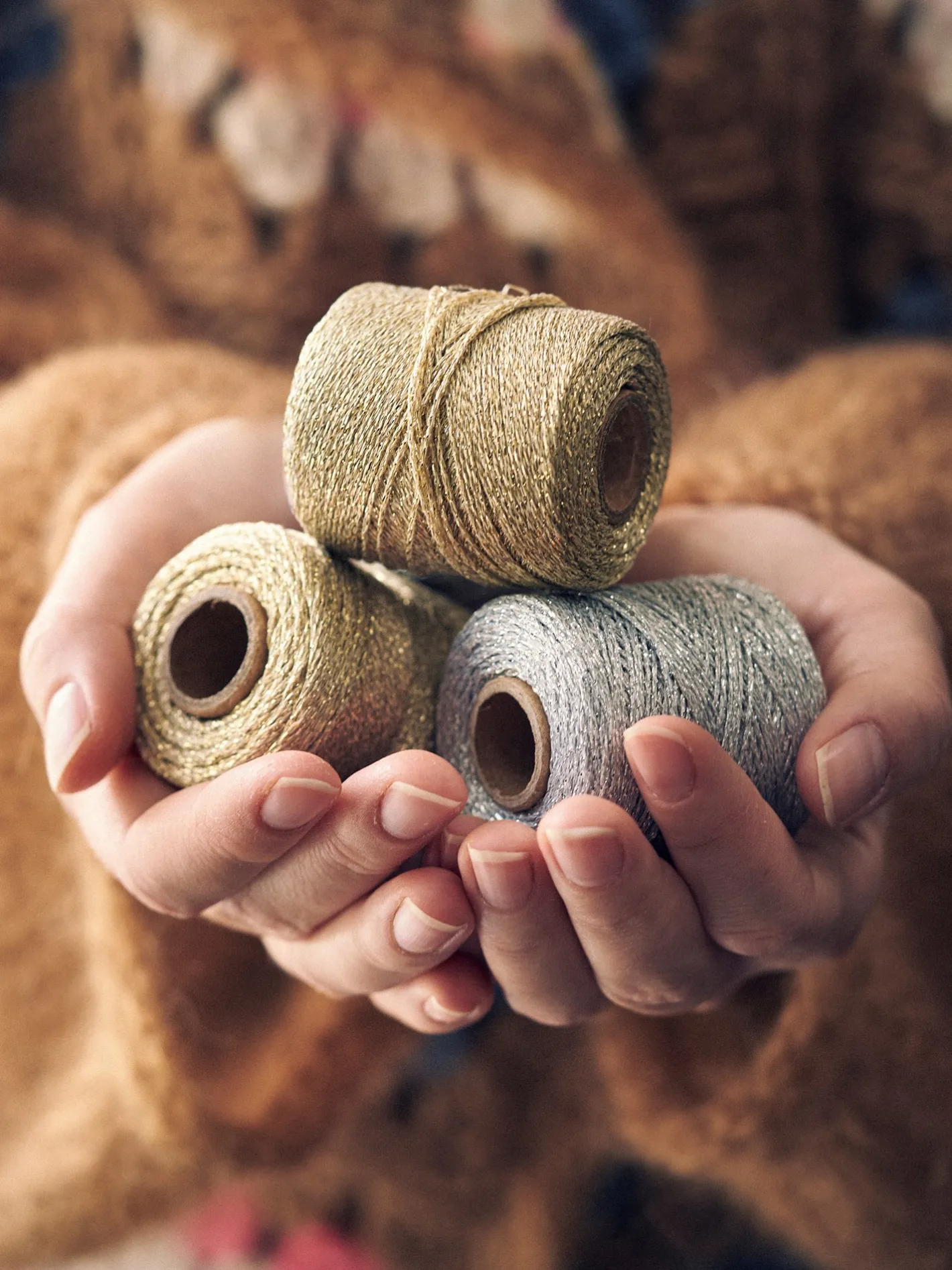 Søstrenes metalliske garn er lavet af STANDARD 100 by OEKO-TEX®-certificeret bomuld og polyester. Den måler 180 m og vejer 25 g.