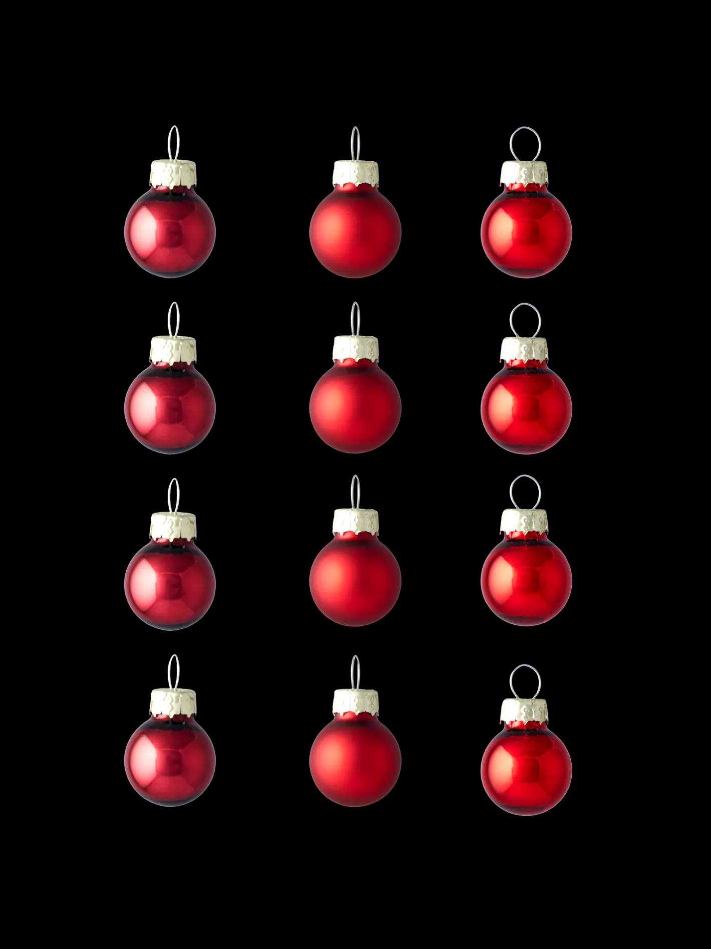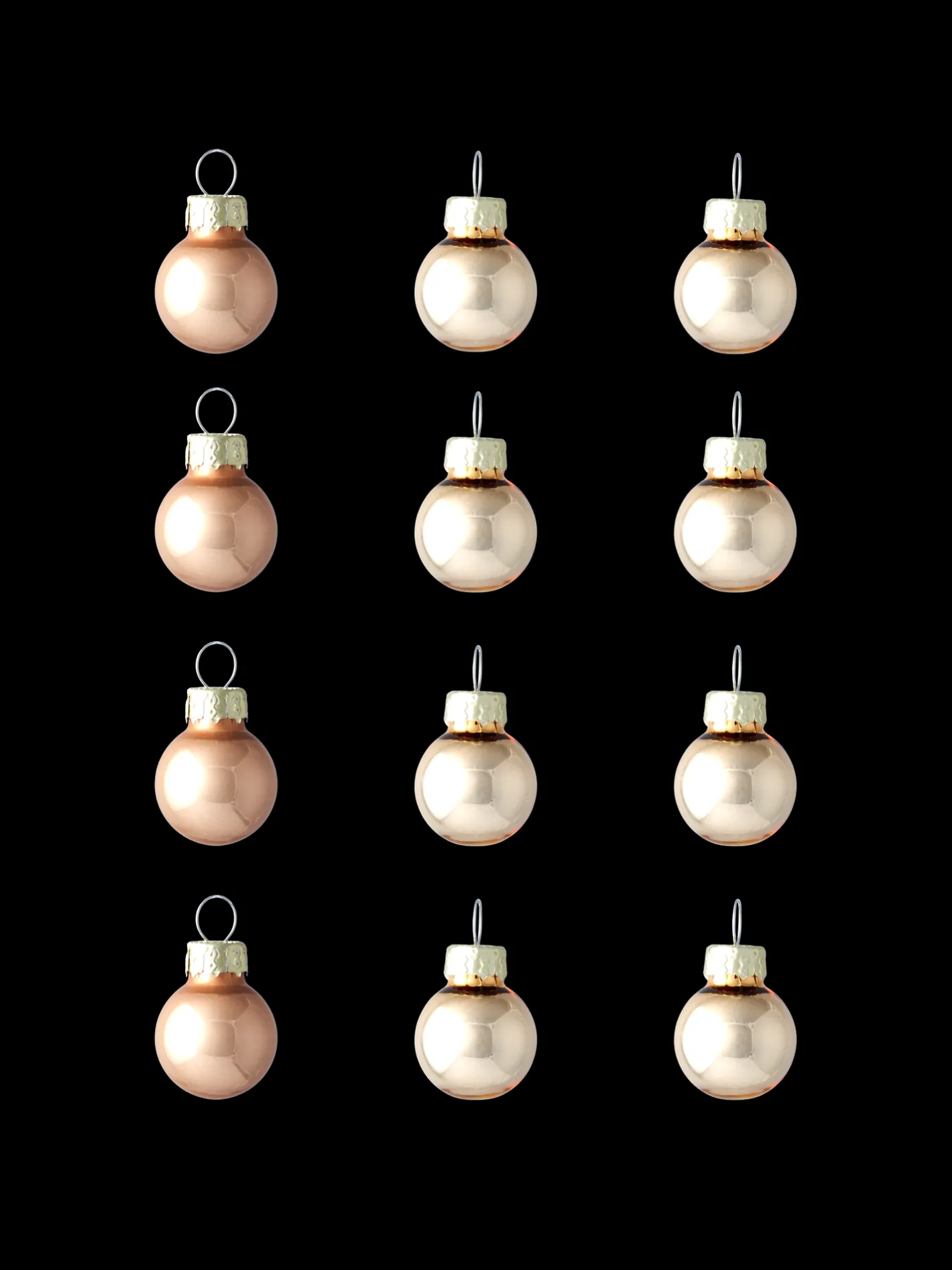 Søstrenes minijulekugler er lavet af glas og har en diameter på 2 cm. Hver pakke indeholder 12 stk.