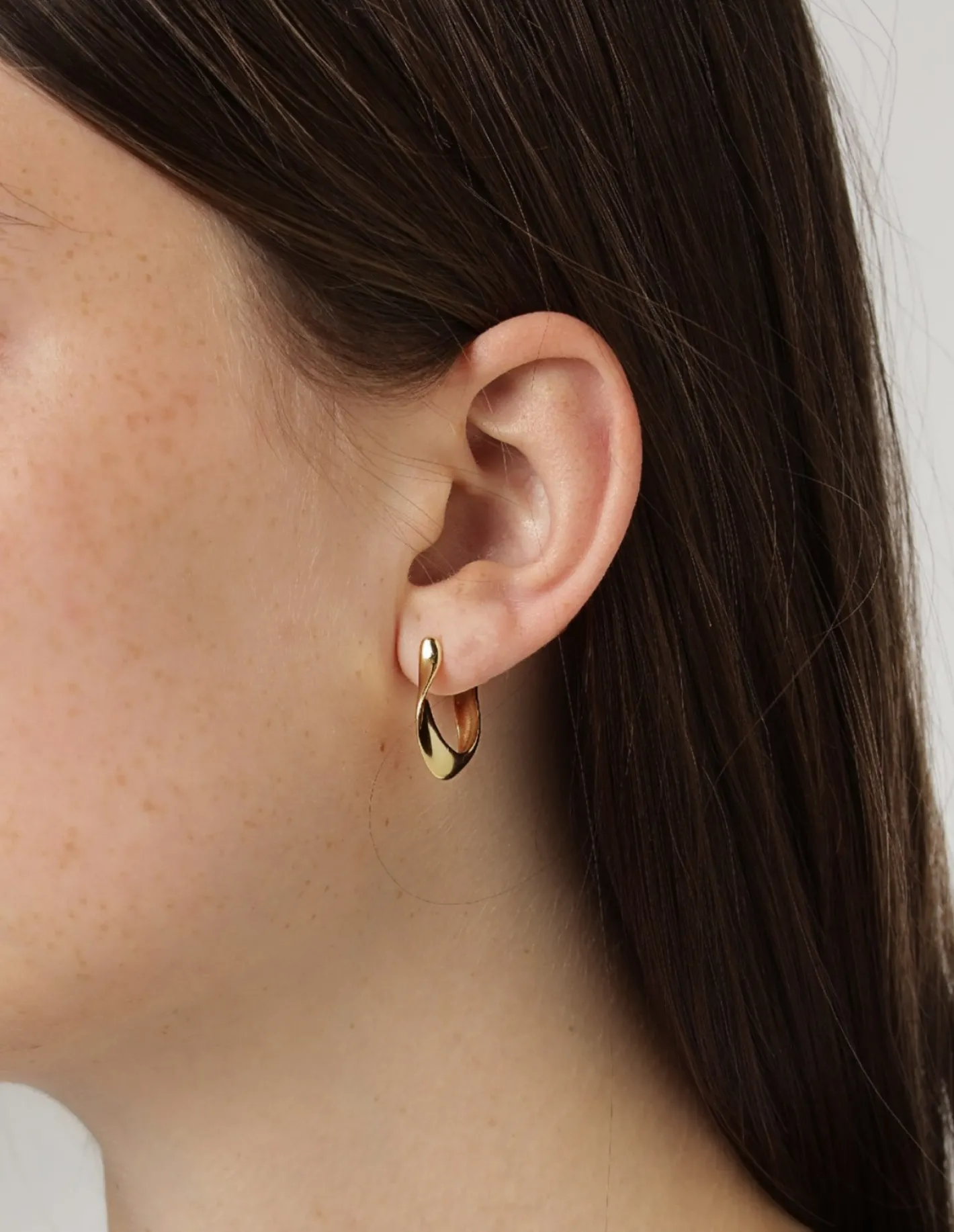 Søstrene gør Dem venligst opmærksom på, at denne vare kun forhandles online. Nanna-øreringene er lavet af 925 sterling sølv og forgyldt med 18 karat guld. De to øreringe måler 17 mm i diameter og kommer i en smuk, lille smykkeæske. “Et tvist til de klassiske øreringe,” siger Anna med et smil. Anna og Clara gør Dem venligst opmærksom på, at De bør undgå direkte kontakt med fugt og væske for en længere holdbarhed af guldbelægningen.