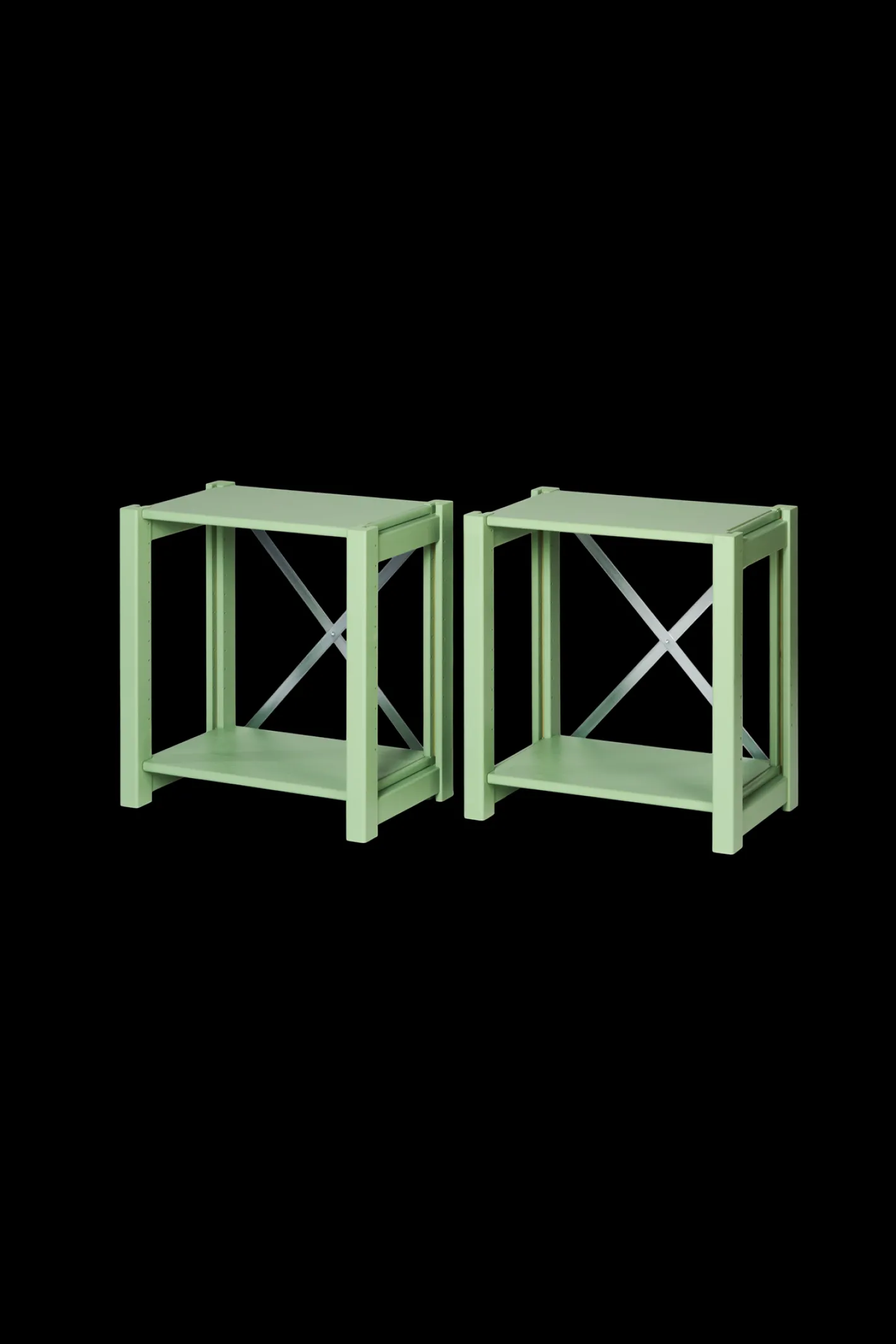 Disse natborde fra det danske mærke ABC Classic har et klassisk design og er lavet af fyrretræ, der viser træets smukke, naturlige kvaliteter og knaster. Det gør i sandhed hvert møbel til noget helt unikt. Hvert lille natbord har 2 hylder, inklusiv toppen, hvorfor der er rigeligt med plads til sengetidens fornødenheder. Alternativt kan det også benyttes som et skønt sidebord.Søstrene gør venligst opmærksom på, at natbordene skal samles.