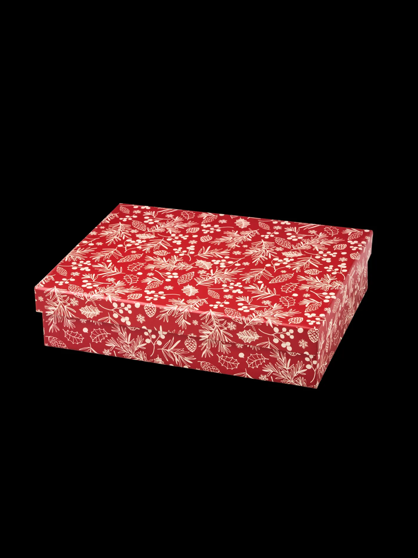 Søstrenes æske er lavet af 100% FSC®-certificeret papir. Den måler 34 x 26 x 8 cm. “De kan bruge den til opbevaring af Deres julekugler og andet pynt,” foreslår Clara.