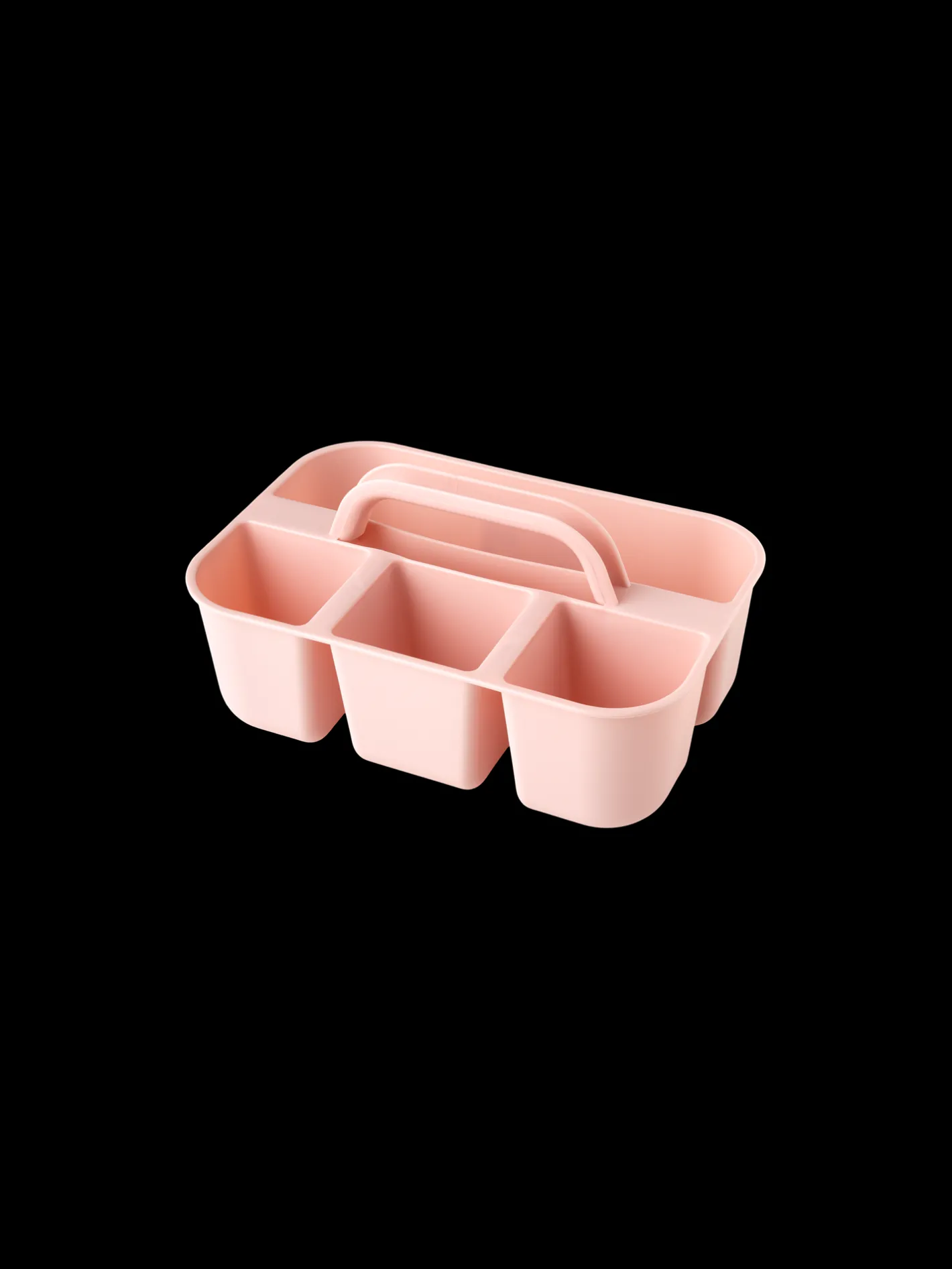 Søstrenes opbevaringskasse med håndtag måler 25 x 17 x 8 cm oger lavet af polypropylen.