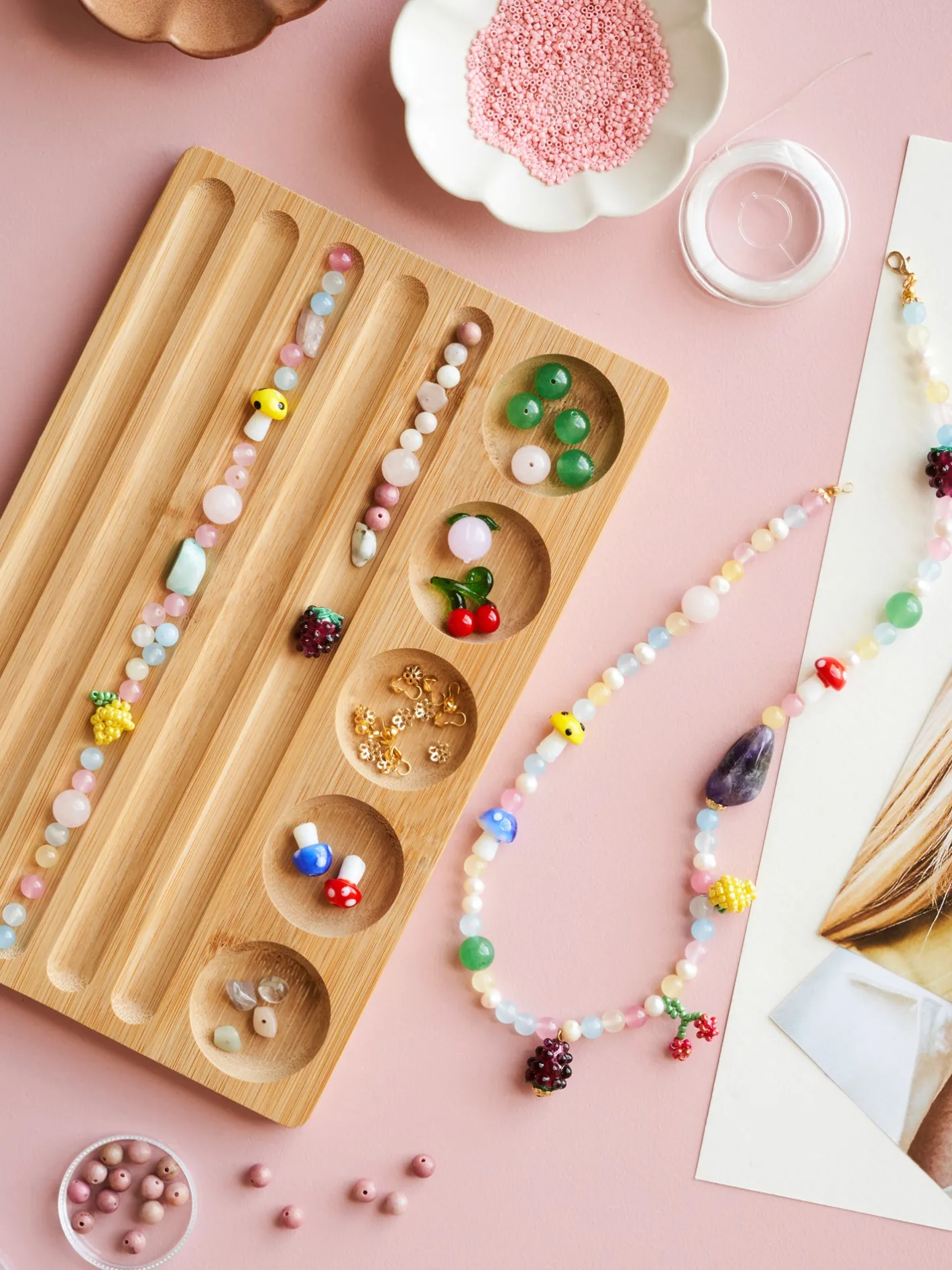 Søstrenes perlebræt til armbånd er lavet af FSC®-certificeret bambus og måler 23 x 15 x 1,5 cm.