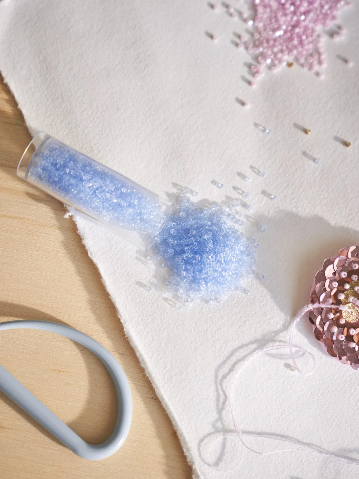 Søstrenes glasperler kommer i pakker à 10 g og er perfekte til at skabe små, fine kunstværker med.
