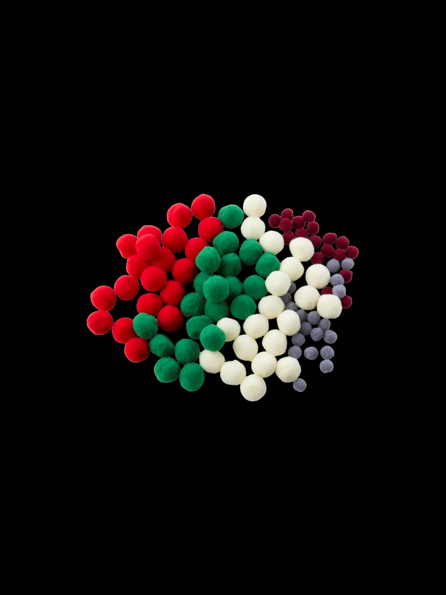 Søstrenes pomponer kommer i en pakke med forskellige størrelser og farver.