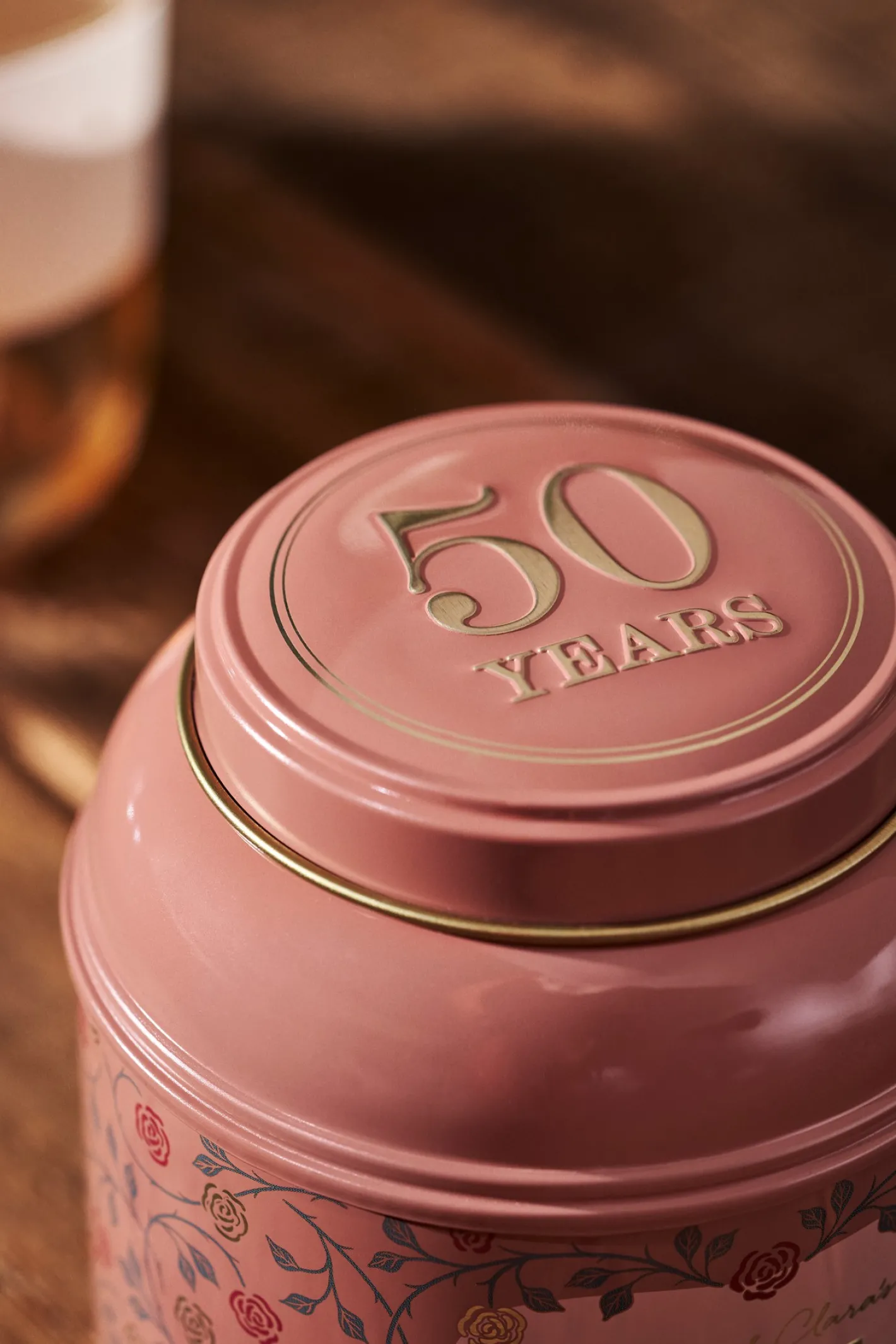 Anna og Claras Rose Garden jubilæumste indeholder 87% grøn te, 5% rosenblade, 5% naturlig granatæblearoma og 3% granatæble. Den kommer i en yndig tedåse på 70 g. Netop denne teopskrift har været i familien i generationer og blev udtænkt af en af Søstrene Grenes grundlæggere. Den deles nu med omverdenen for at fejre 50 år med Søstrene Grene.