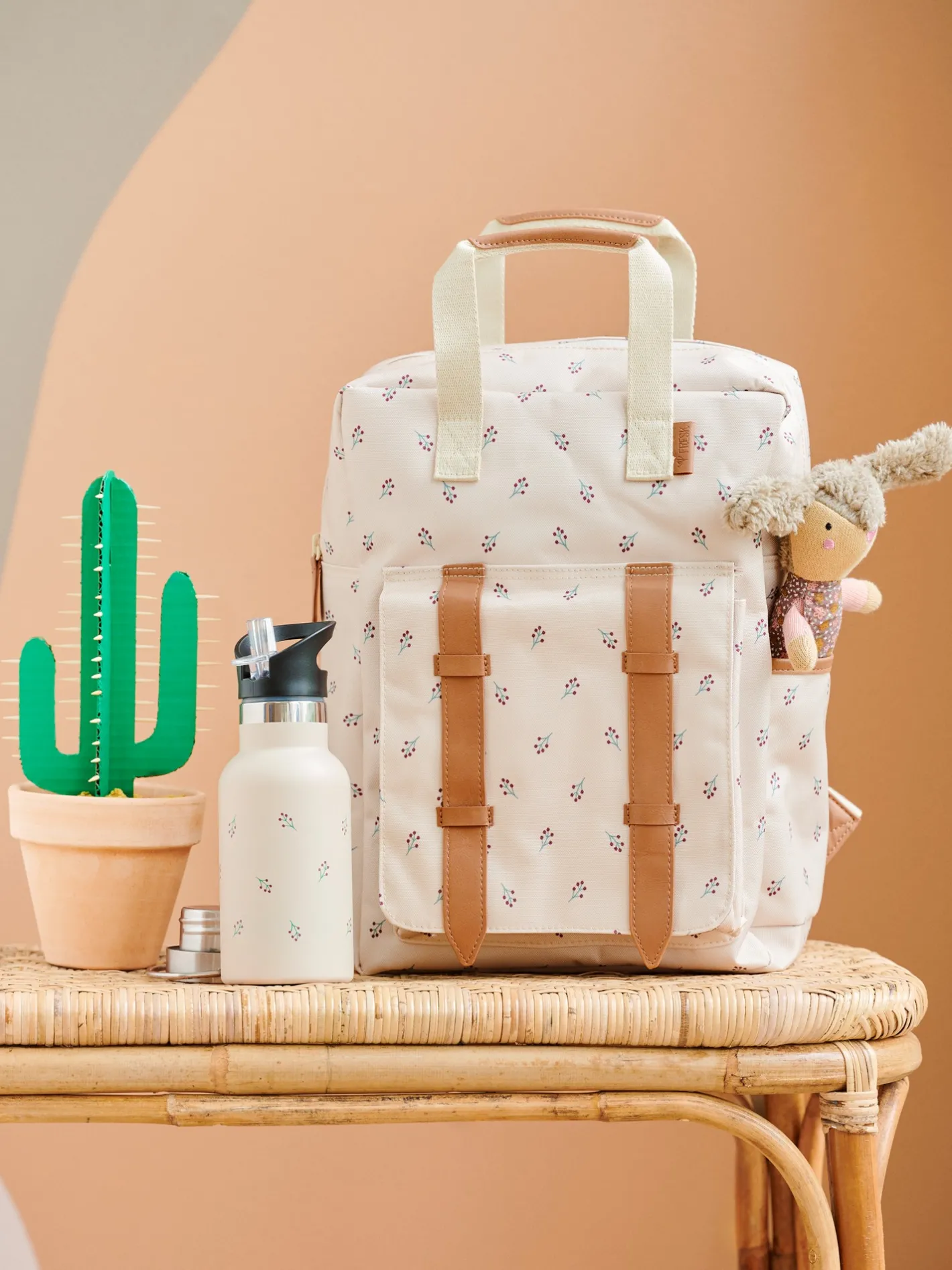 Denne rygsæk fra Fresk kommer i en størrelse large, som måler 36 x 26 x 10 cm.Rygsækken er udstyret med flere lommer til at pakke og opbevare alle Deres vigtige genstande sikkert. Indvendigt finder De plads til opbevaring af Deres drikkeflaske, mens yderlommen har en magnetisk lukning for lettere tilgængelighed, når De er på farten.”Forbered Dem til de smås skolestart med denne æstetiske og funktionelle rygsæk,” foreslår Clara. “Den er også god til studerende eller til Deres kommende eventyr.”
