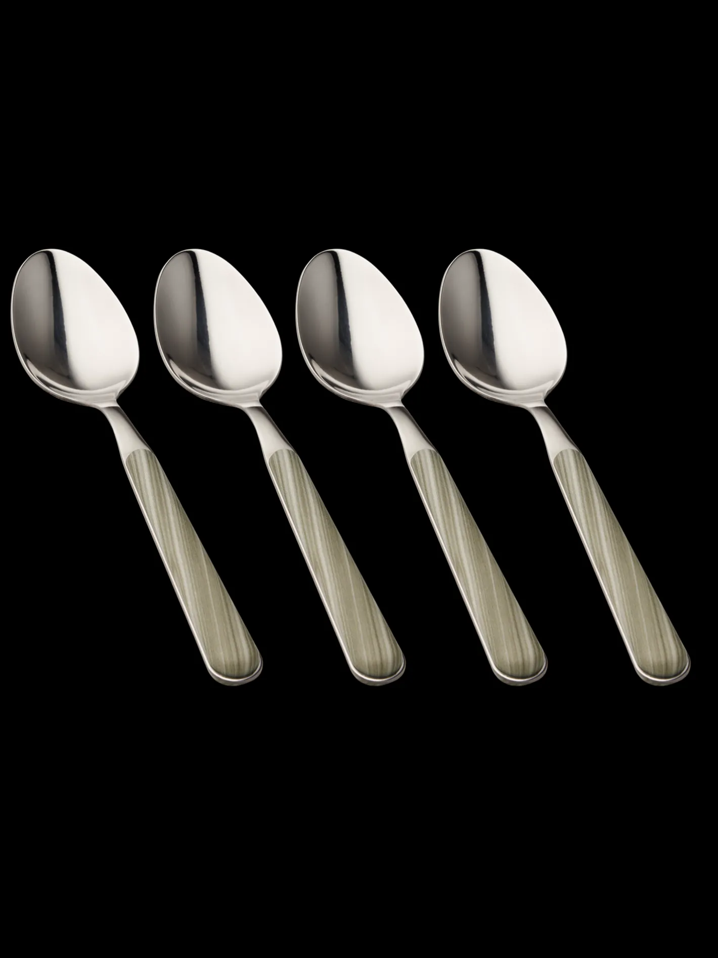 Søstrene gør Dem venligst opmærksom på, at denne vare kun forhandles online.Dette skønne sæt med spiseskeer fra Neva er lavet af rustfrit stål med et greb i glasfiberforstærket polyester med træ-effekt. Et sæt indeholder 4 spiseskeer med en længde på 20,5 cm.Anna og Clara ved, at bestik er et væsentligt element i enhver madoplevelse, idet det rummer både funktionalitet og æstetik. Den rigtige borddækning kan gøre underværker, mener Anna og Clara, og Deres samling af knive, gafler, skeer og meget mere fra det italienske brand Neva har været et vidunderligt fund for søstrene.”Bestik er ikke blot redskaber til at spise med; det er en forlængelse af ens personlige stil,” bemærker Anna, mens hun omhyggeligt dækker bordet til en middag med nære venner. “Hvert stykke bestik udstråler kunstnerisk håndværk,” tilføjer Clara med et smil.Tag Deres næste madoplevelse til nye højder med elegant bestik fra Neva.