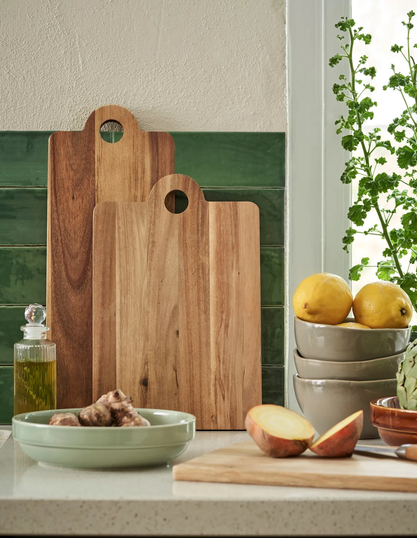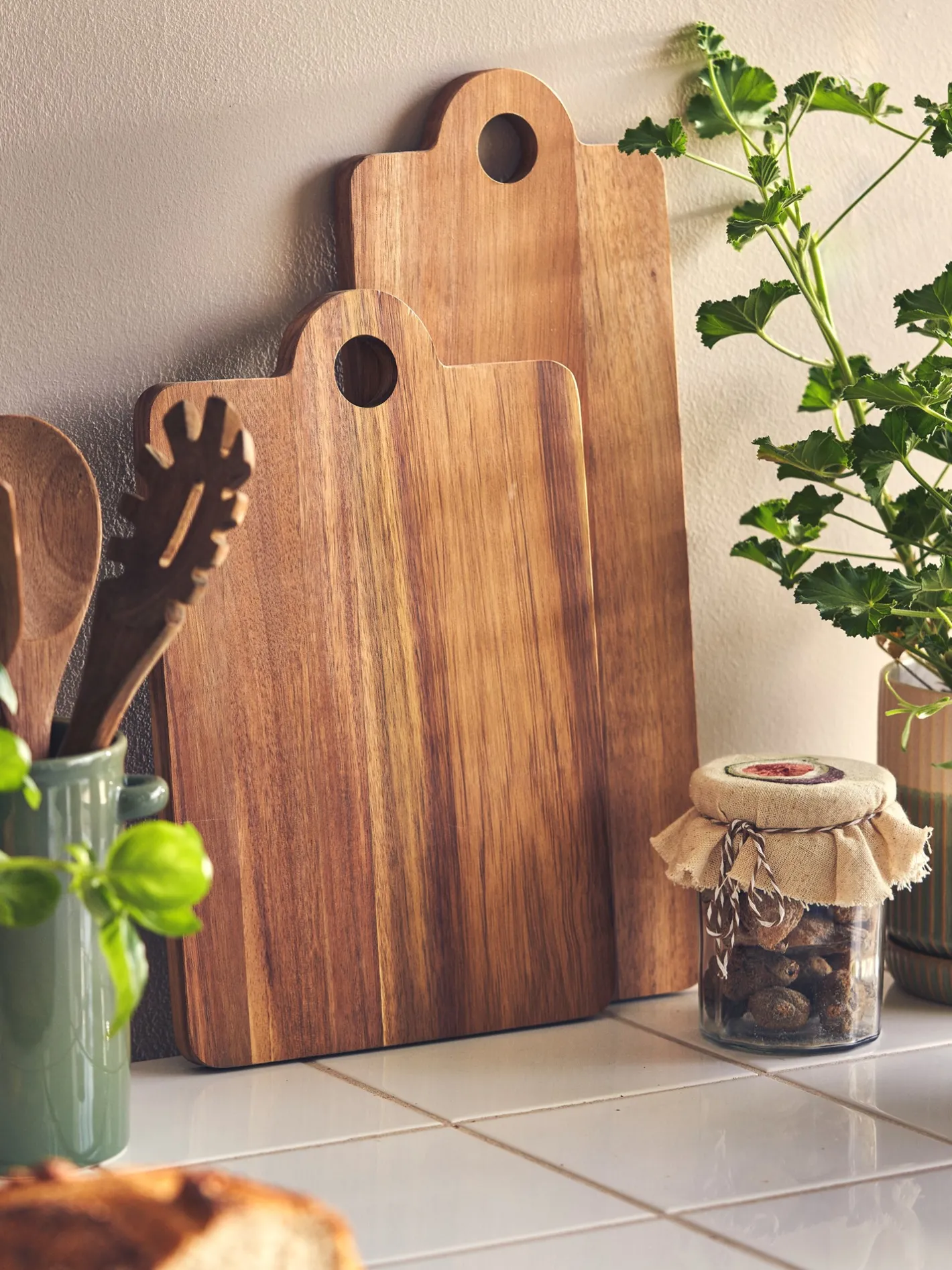 Søstrenes skærebræt er lavet af 100% FSC®-certificeret akacietræ og måler 21 x 32 cm.Da akacietræ er et naturmateriale, gør søstrene venligst opmærksom på, at produktet kan variere en smule i farve og mønster.
