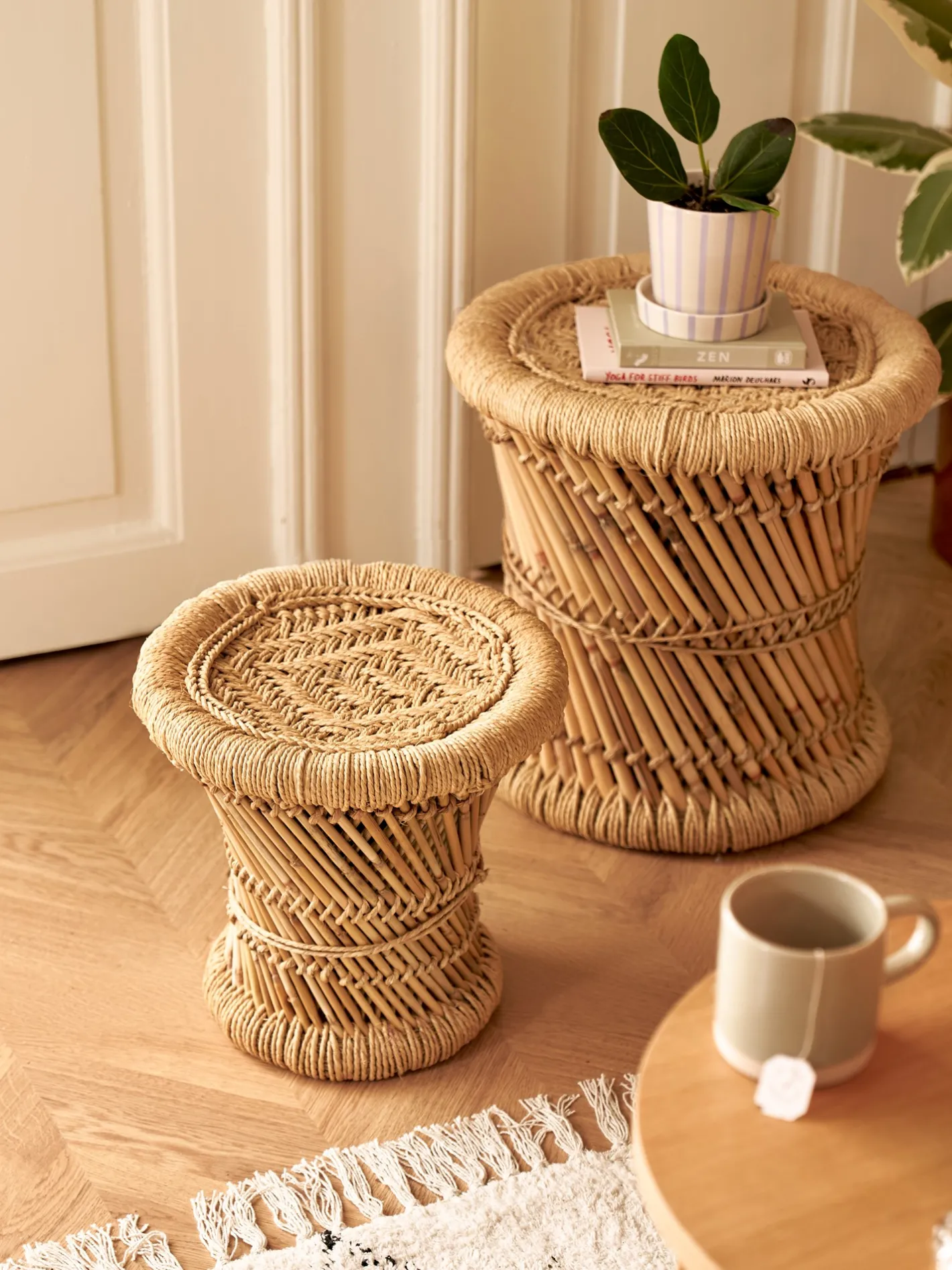 Søstrenes skammel er lavet af bambus og jute, et fint lille interiørfund til Deres hjem.
