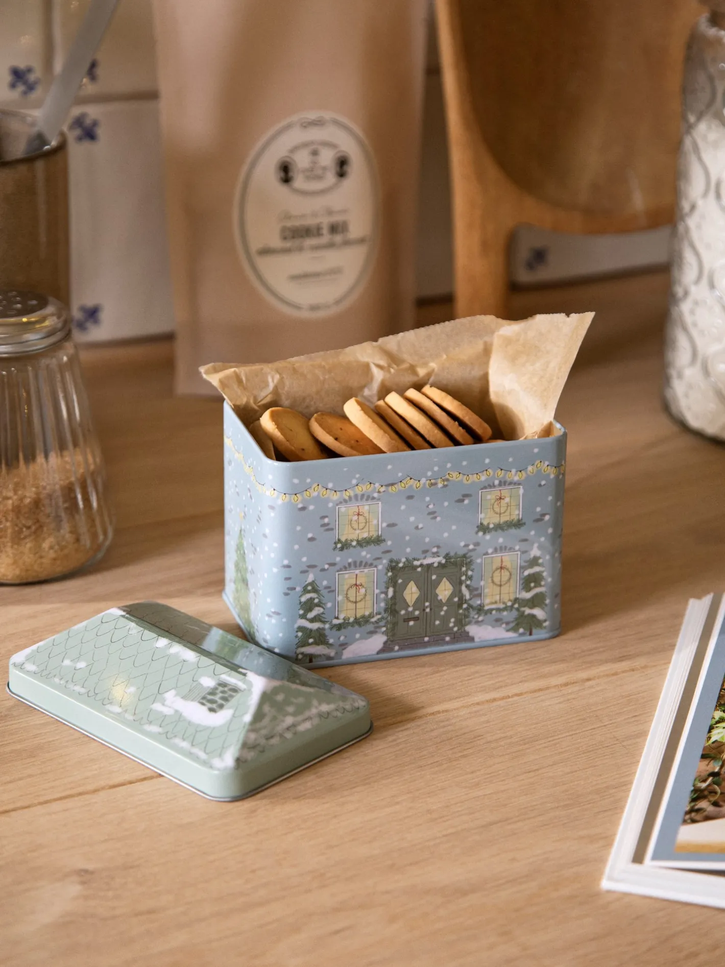 Søstrenes småkagedåse har et smukt juledesign og er ideel til at opbevare julesmåkager og andre lækkerier.