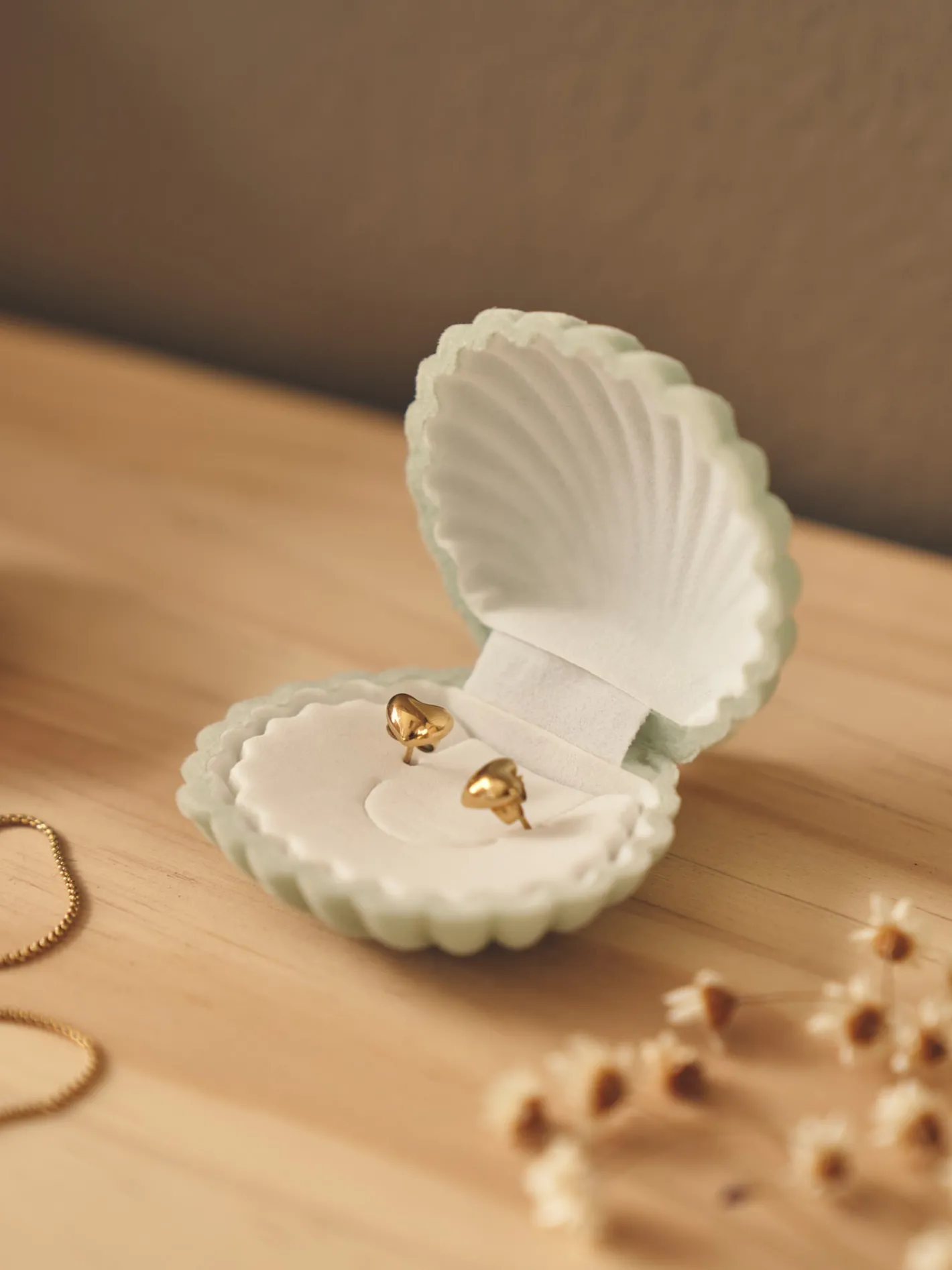Søstrenes smykkeskrin er beklædt med et blødt fløjlsagtigt materiale og har plads til øreringe samt en halskæde eller et armbånd.