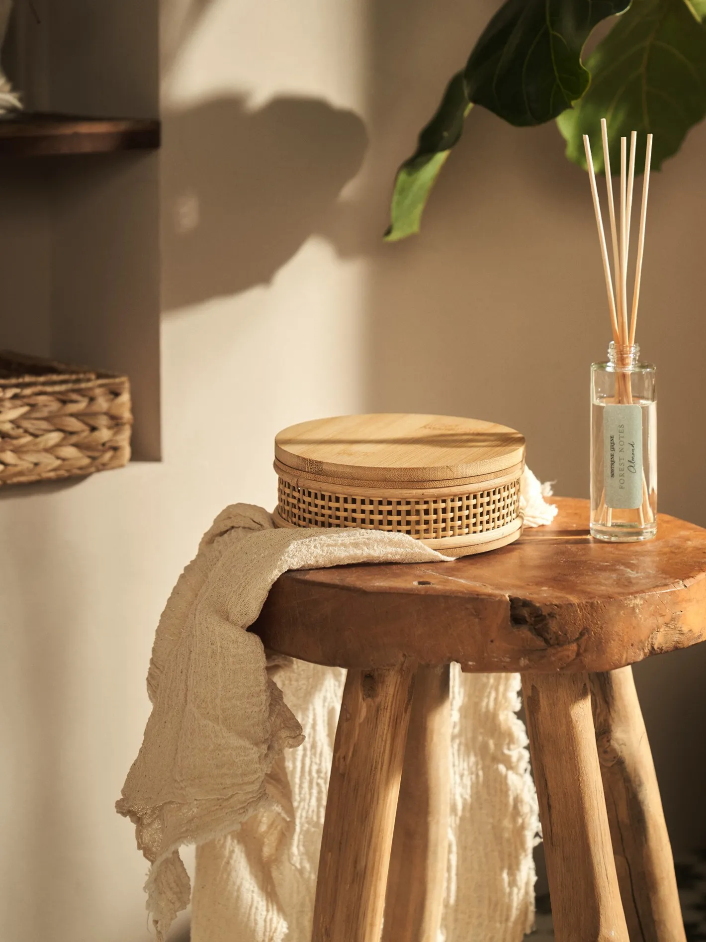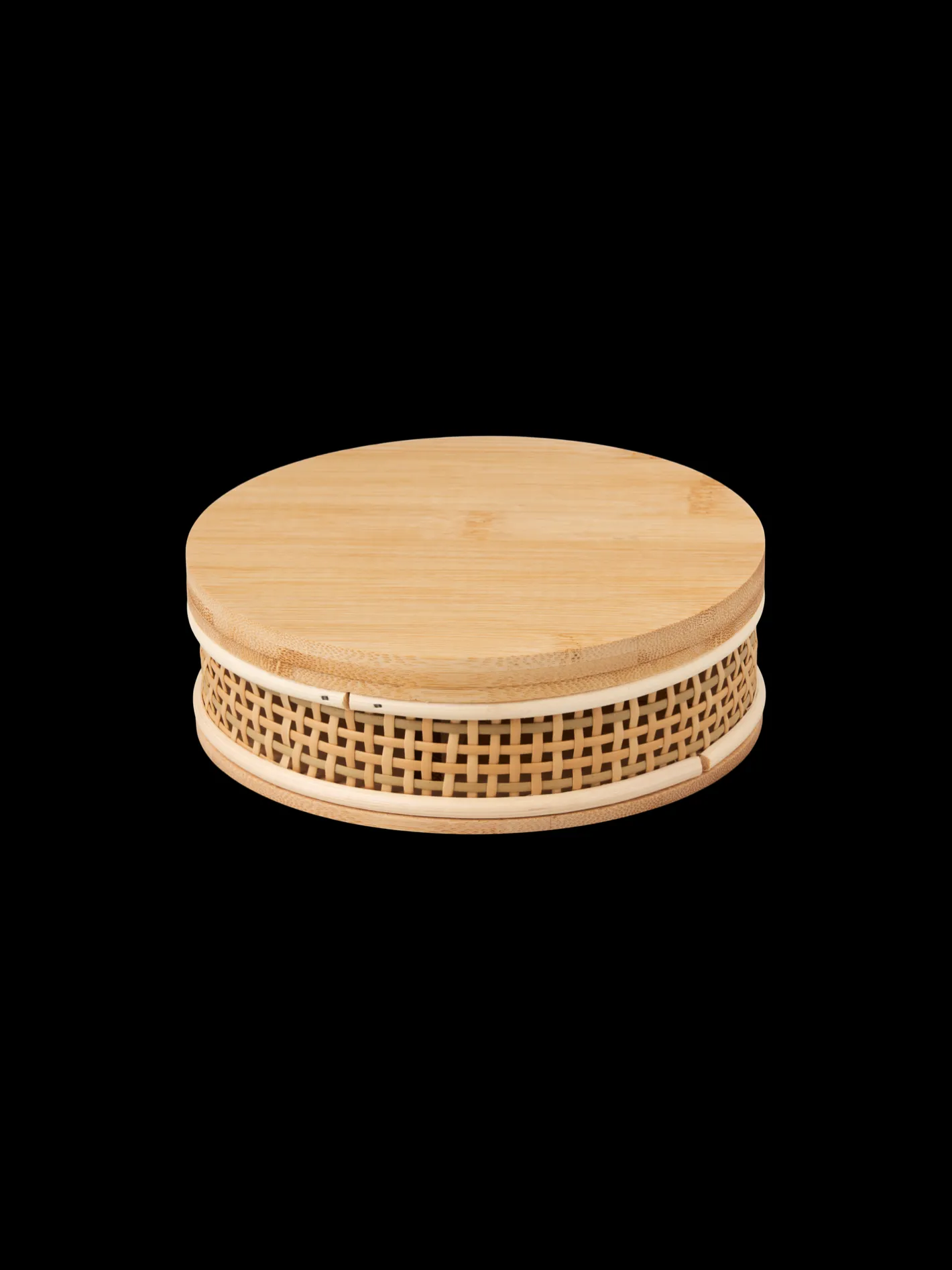 Søstrenes smykkeæske er lavet af FSC®-certificeret bambus samt glas og plastik. Det har et lille spejl, som De kan beundre Deres smukke selv i.